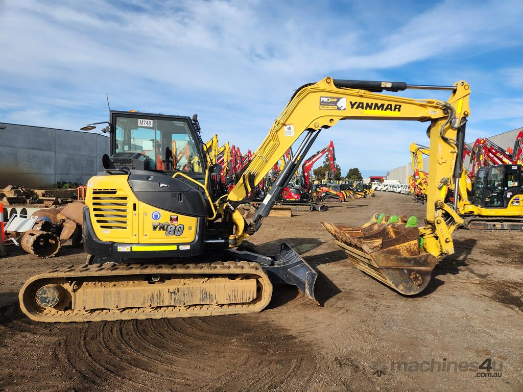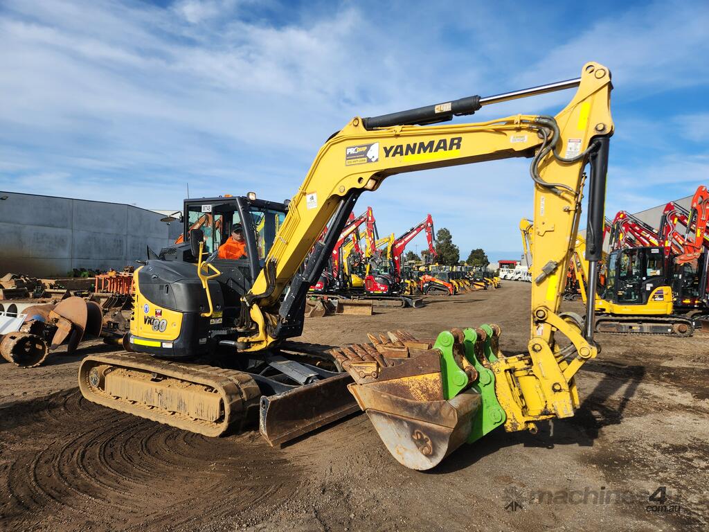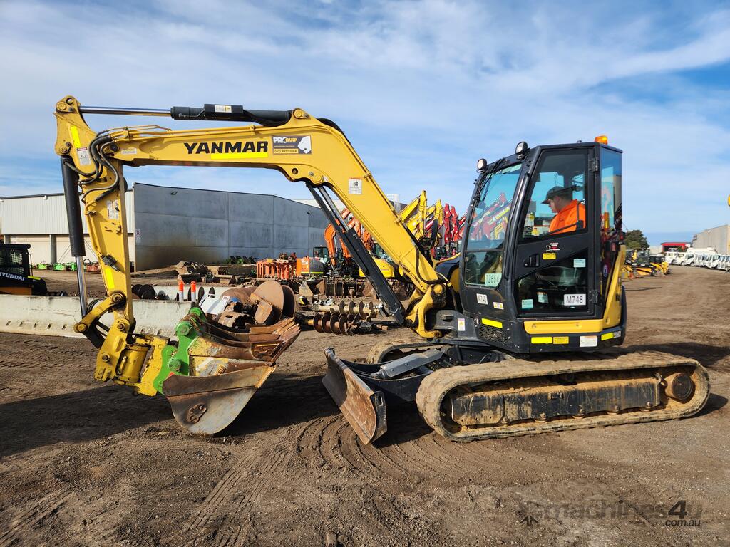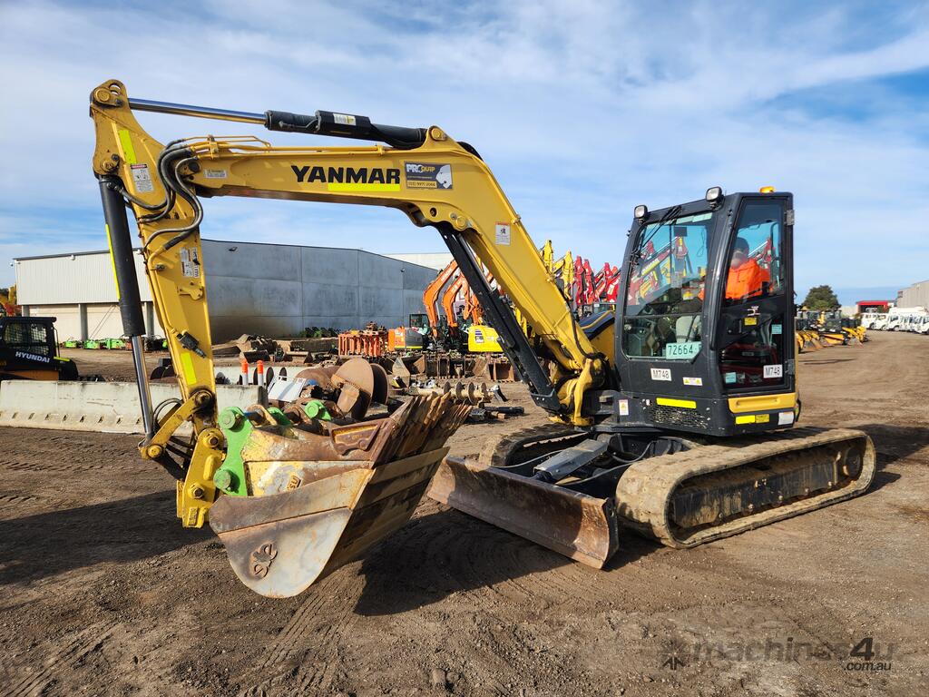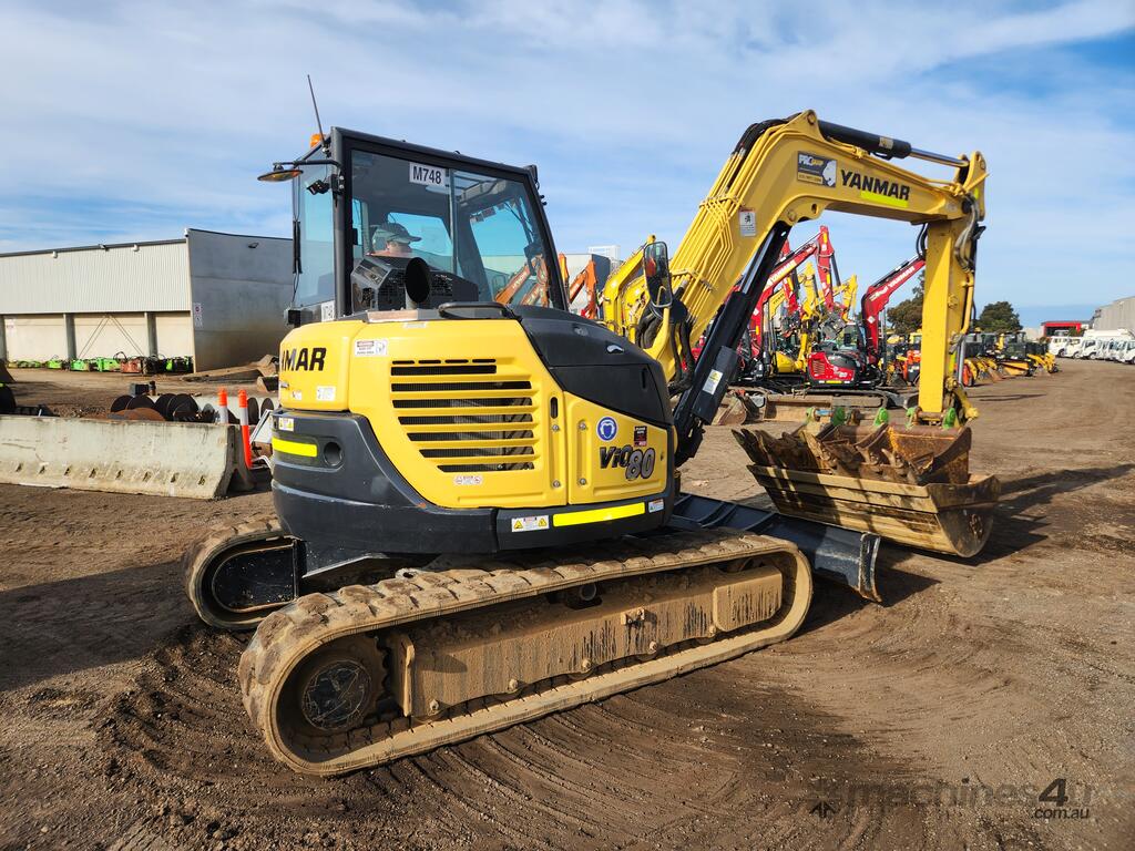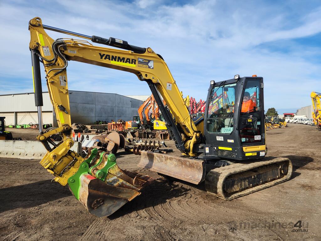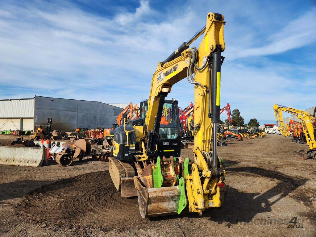 2021 YANMAR VIOT EXCAVATOR WITH TILT HITCH AND 2394 HRS (M748), ONE OWNER, AUSTRALIAN DELIVERED AUGUST 2021, 8200KG OPERATING WEIGHT, ZERO TAIL SWING, RUBBER TRACKS, SWIVEL BOOM, FULL A/C CABIN WITH ROPS, DOZER BLADE, AUXILIARY HYDRAULICS WITH PROPORTIONAL CONTROLS, AUTO IDLE FUNCTION, TRAVEL ALARMS, HYDRAULIC SAFETY TILTING QUICK HITCH, 450 & 600mm DIG BUCKETS, MUD BUCKET. RISK ASSESSMENT, UHF RADIO, E-STOPS, ISOLATOR, FULL SERVICE HISTORY, READY TO WORK. 3-MONTH DRIVETRAIN WARRANTY APPLIES.