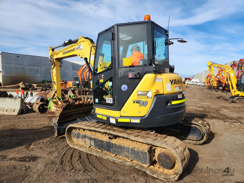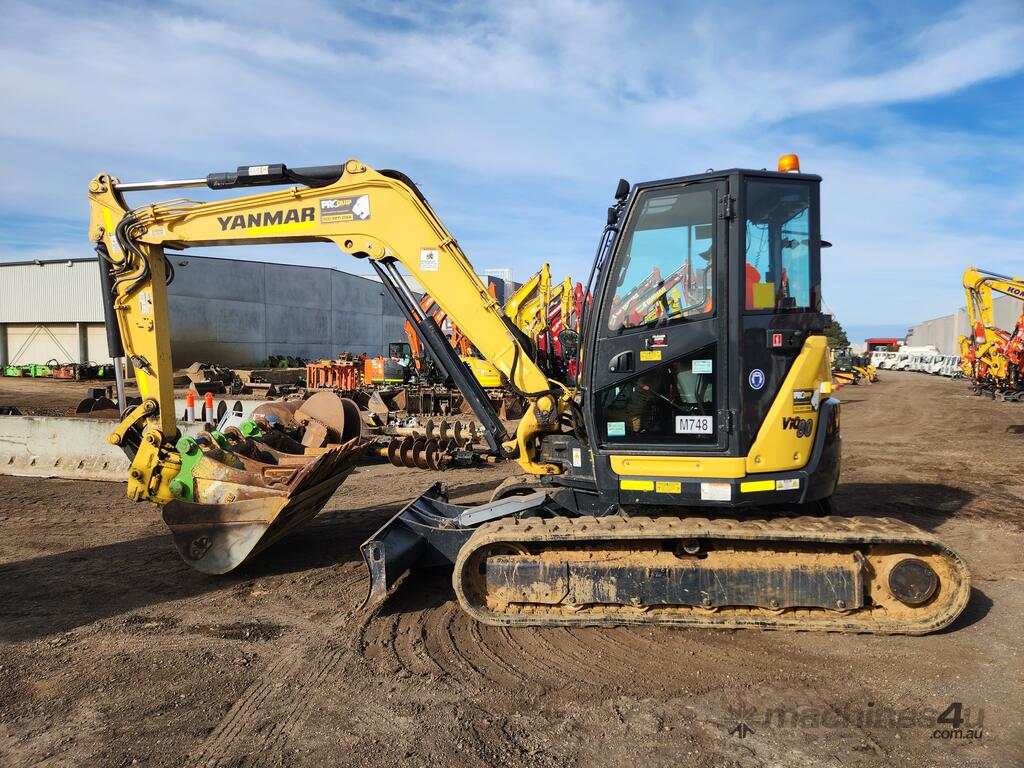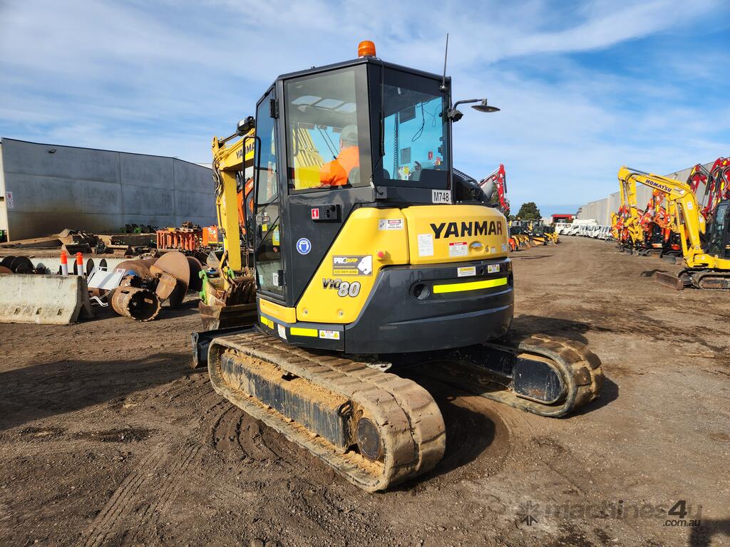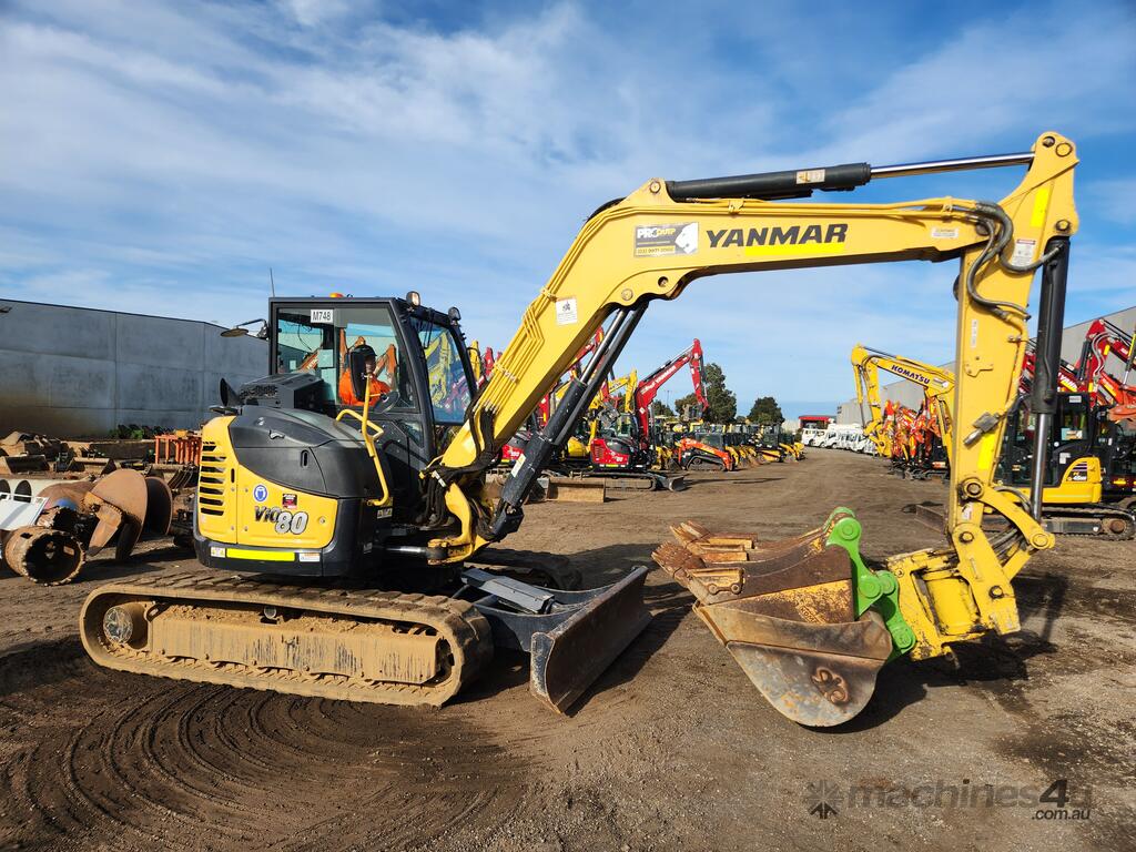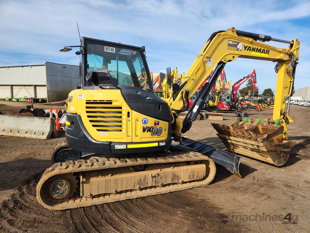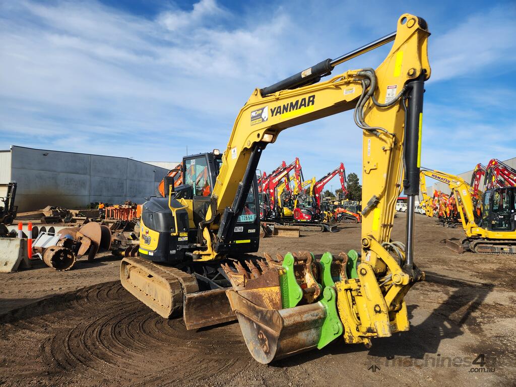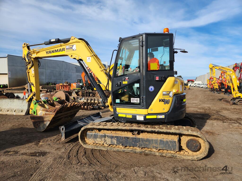 2021 YANMAR VIOT EXCAVATOR WITH TILT HITCH AND 2394 HRS (M748), ONE OWNER, AUSTRALIAN DELIVERED AUGUST 2021, 8200KG OPERATING WEIGHT, ZERO TAIL SWING, RUBBER TRACKS, SWIVEL BOOM, FULL A/C CABIN WITH ROPS, DOZER BLADE, AUXILIARY HYDRAULICS WITH PROPORTIONAL CONTROLS, AUTO IDLE FUNCTION, TRAVEL ALARMS, HYDRAULIC SAFETY TILTING QUICK HITCH, 450 & 600mm DIG BUCKETS, MUD BUCKET. RISK ASSESSMENT, UHF RADIO, E-STOPS, ISOLATOR, FULL SERVICE HISTORY, READY TO WORK. 3-MONTH DRIVETRAIN WARRANTY APPLIES.