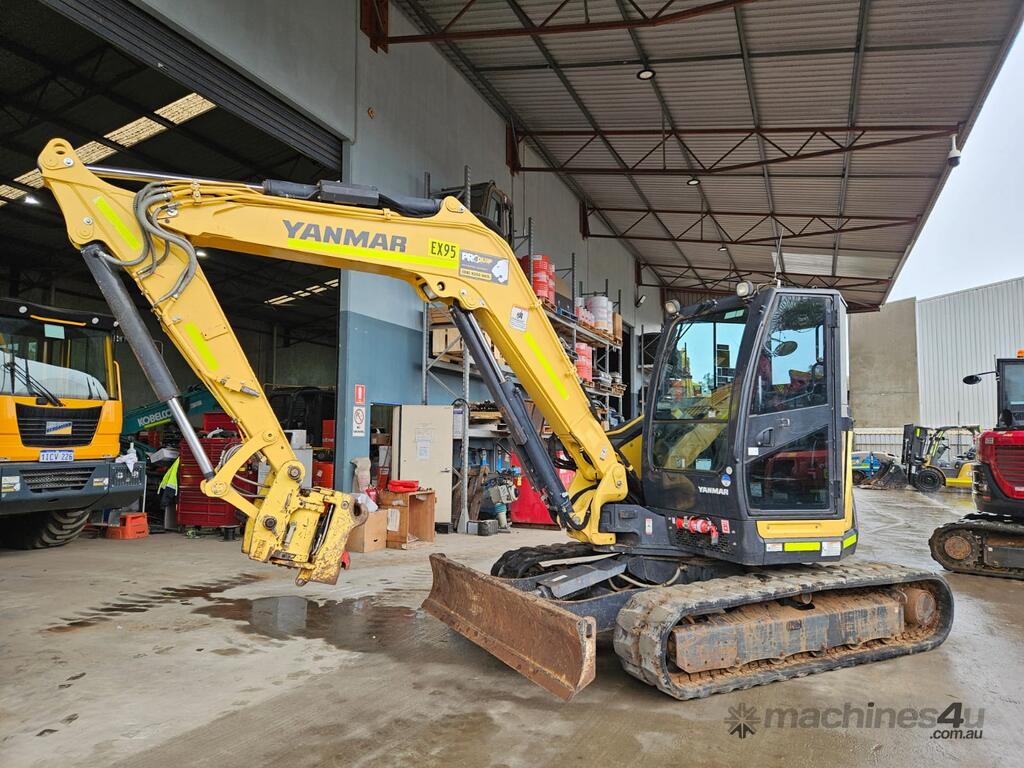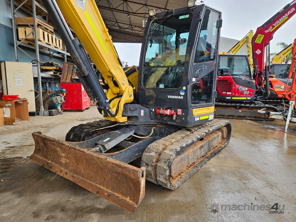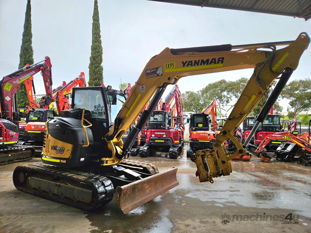 2021 YANMAR VIO80 EXCAVATOR (EX95) WITH TILTING HITCH, 2000 HOURS, FULL TIER 1 CIVIL SPEC, ONE OWNER, AUSTRALIAN DELIVERED APRIL 2021, 8200KG OPERATING WEIGHT, ZERO TAIL SWING, RUBBER TRACKS, SWIVEL BOOM, FULL A/C CABIN WITH ROPS, DOZER BLADE, DUAL AUXILIARY HYDRAULICS WITH PROPORTIONAL CONTROLS, AUTO IDLE FUNCTION, TRAVEL ALARMS, 450 & 600mm DIG BUCKETS, MUD BUCKET. RISK ASSESSMENT, UHF RADIO, E-STOPS, ISOLATOR, FULL SERVICE HISTORY, READY TO WORK. 3-MONTH DRIVETRAIN WARRANTY APPLIES