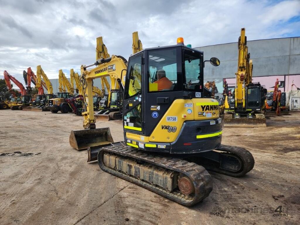 2021 YANMAR VIO80 EXCAVATOR (M758) WITH 1475 HOURS, FULL TIER 1 CIVIL SPEC, ONE OWNER, AUSTRALIAN DELIVERED JULY 2021, 8200KG OPERATING WEIGHT, ZERO TAIL SWING, RUBBER TRACKS, SWIVEL BOOM, FULL A/C CABIN WITH ROPS, DOZER BLADE, DUAL AUXILIARY HYDRAULICS WITH PROPORTIONAL CONTROLS, AUTO IDLE FUNCTION, TRAVEL ALARMS, HYDRAULIC SAFETY QUICK HITCH, 450 & 600mm DIG BUCKETS, AND MUD BUCKET. RISK ASSESSMENT, UHF RADIO, E-STOPS, ISOLATOR, FULL SERVICE HISTORY, READY TO WORK. 3-MONTH DRIVETRAIN WARRANTY APPLIES