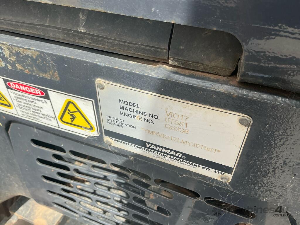 CP: CIRCA 2021,Yanmar,VI017,Excavator (Rubber Tracked),Engine #: Q5936,3 Cyl,Diesel,Odometer not visible,351 (Hrs. Showing on Hour meter),Colour: Yellow,Unregistered,VIN: YMRV1017LMYJ0T551,Serial No: 0T551,Sold with No Plates