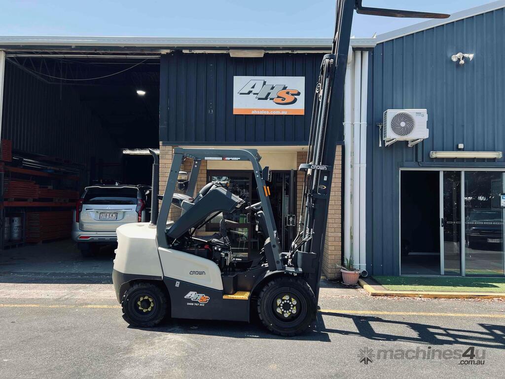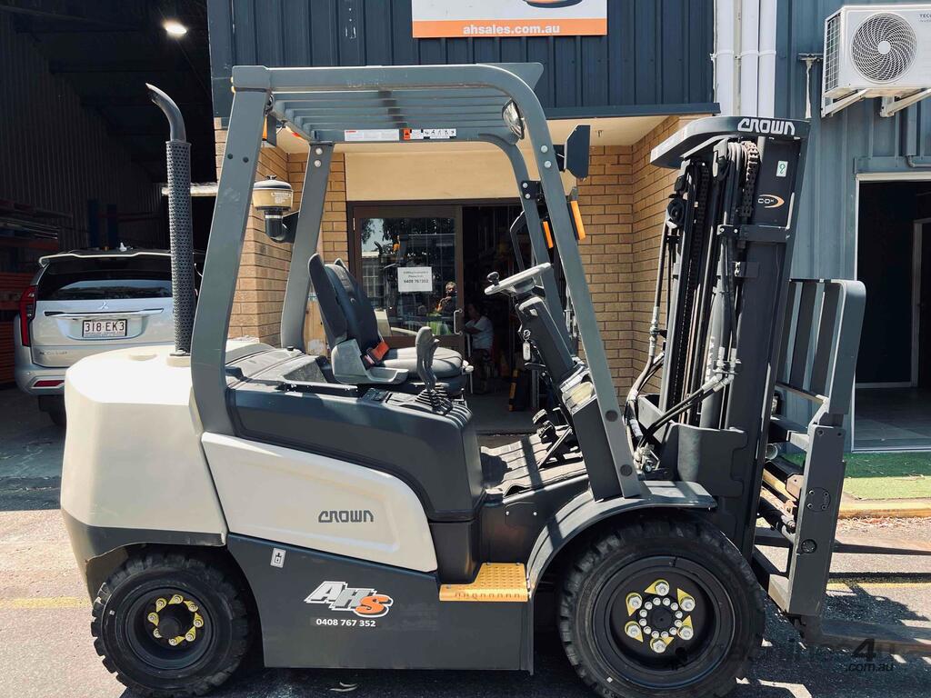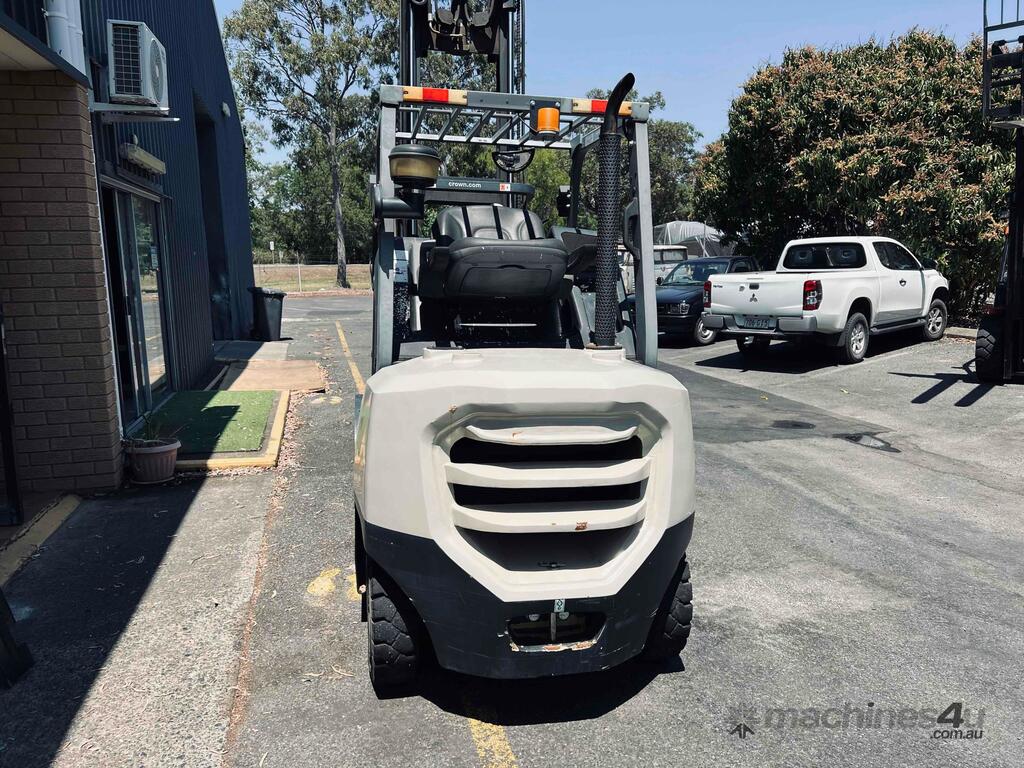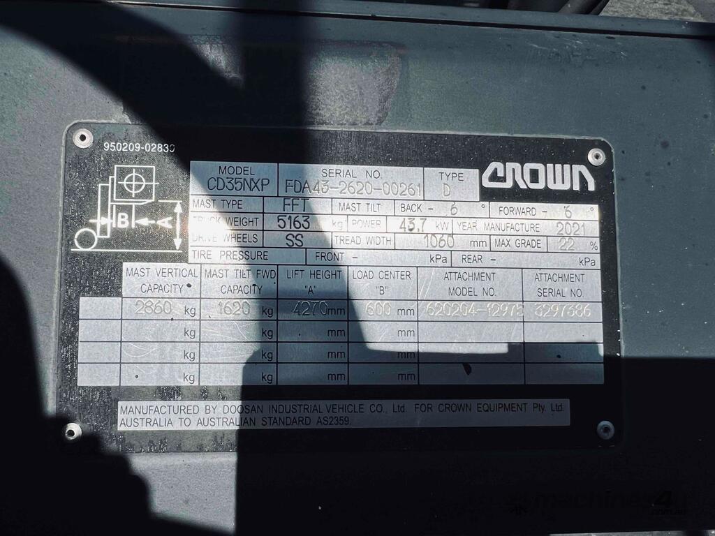 2021 Crown Diesel Forklift Ex Shire Council, Model NXD35 features a 3500kg capacity and a 4270mm three-stage container mast, it offers impressive reach and versatility. The forklift is equipped with sideshift and a fork positioner, coupled with 1200mm forks for precise load handling.