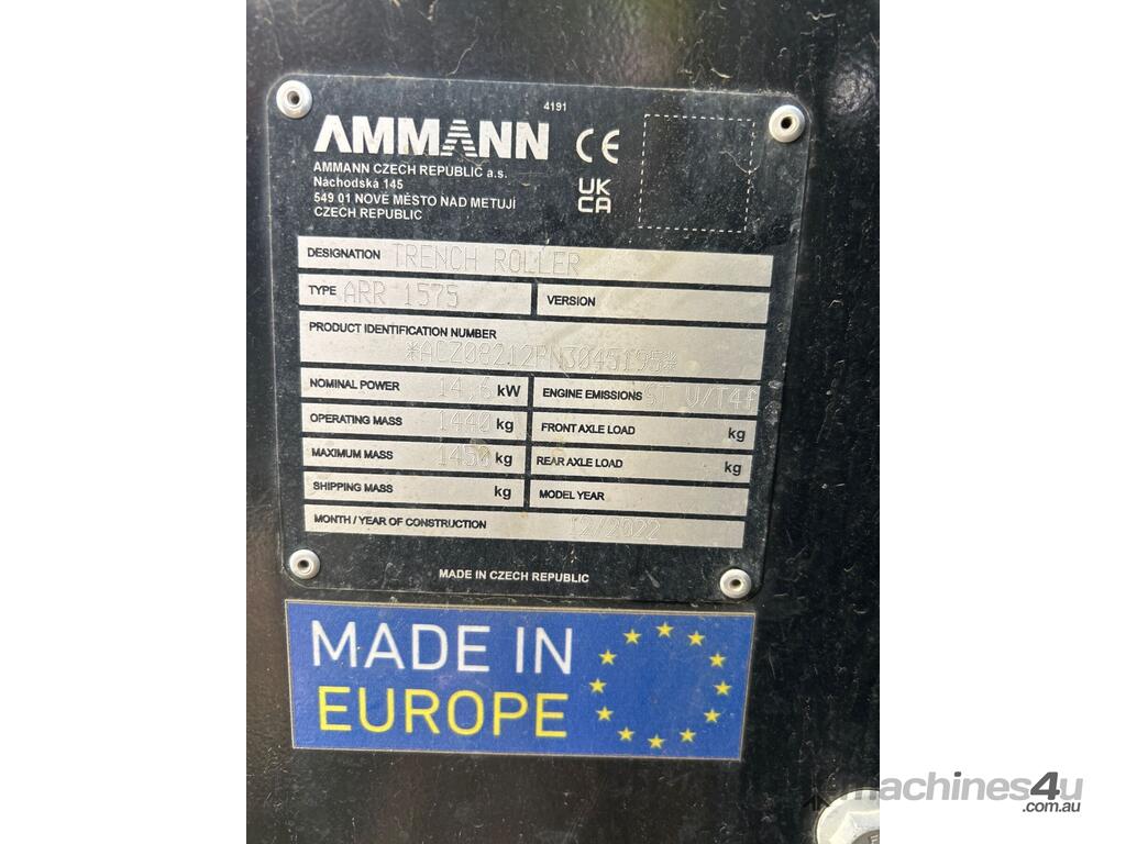 CP: CIRCA 2022,Built: 12/2022,Ammann,ARR 1575,Trench Roller,3 Cyl,Diesel,Odometer not visible,94 (Hrs. Showing on Hour meter),Colour: Green,Unregistered NSW,VIN: ACZ08212PN3045195,Sold with No Plates,WOVR Status: WOVR N/A,Incident Type: Water
