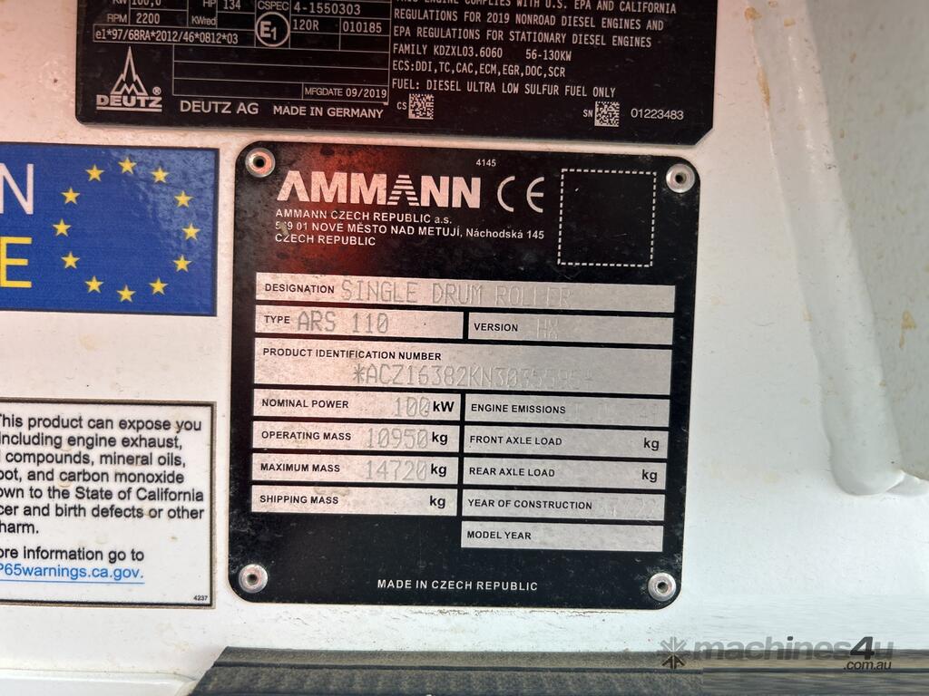 2022 Ammann ARS 110 HX Smooth Drum Compactor :      $135,000 AUD($148,500 Inc. GST)
