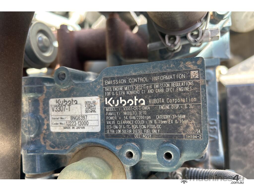 - Engine: Kubota V3307-CR-TE5, Diesel, ISO 14396 – 55.4 kW (75 HP) compliant with EU Stage V / EPA Tier 4 Final; EGR + DOC + DPF treatment