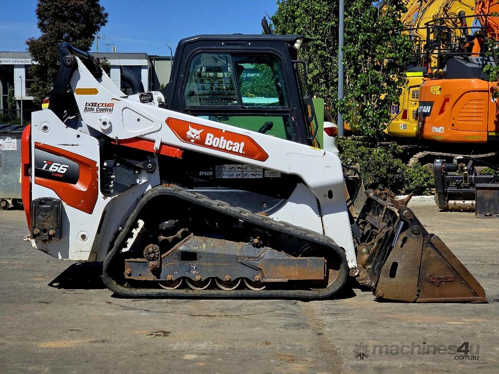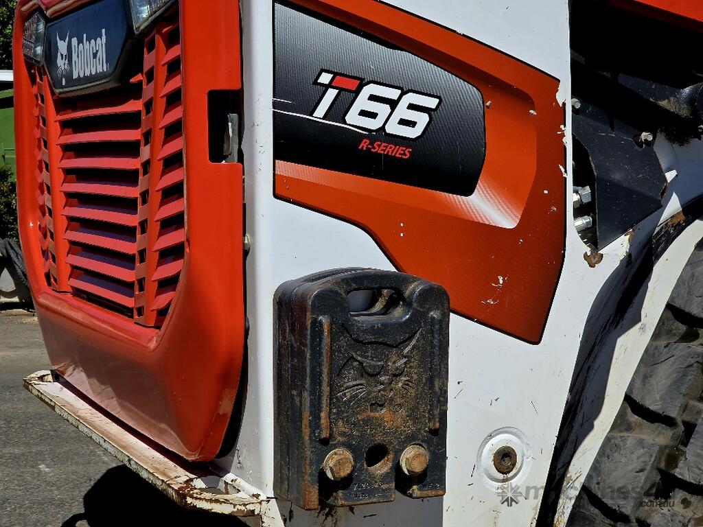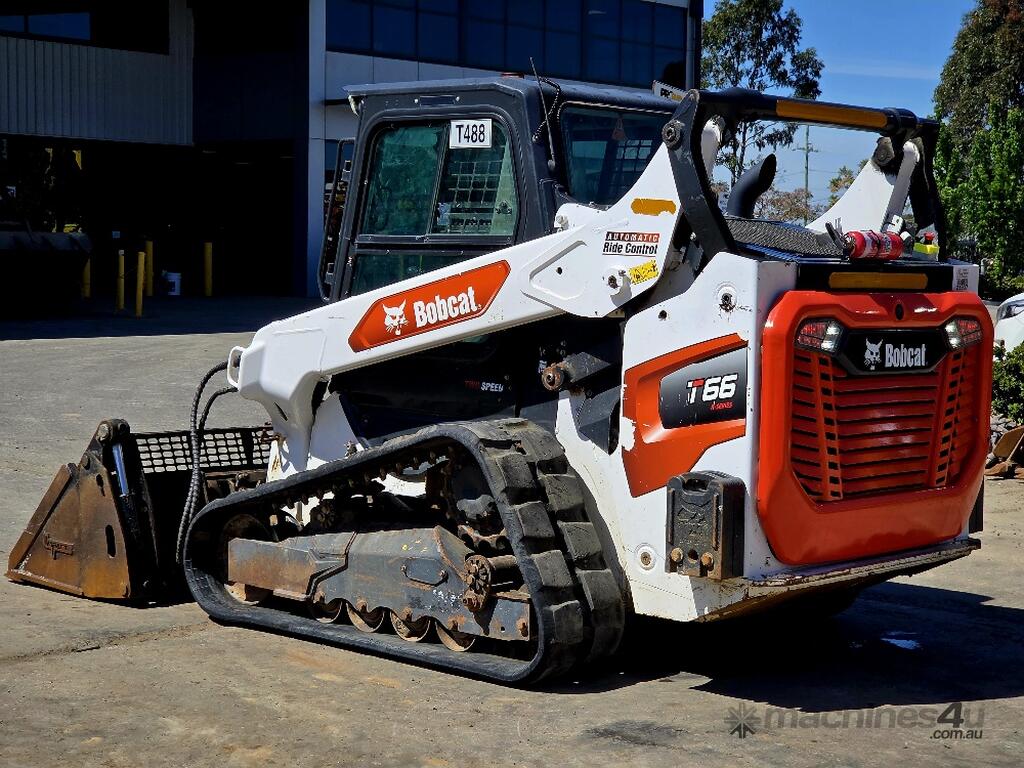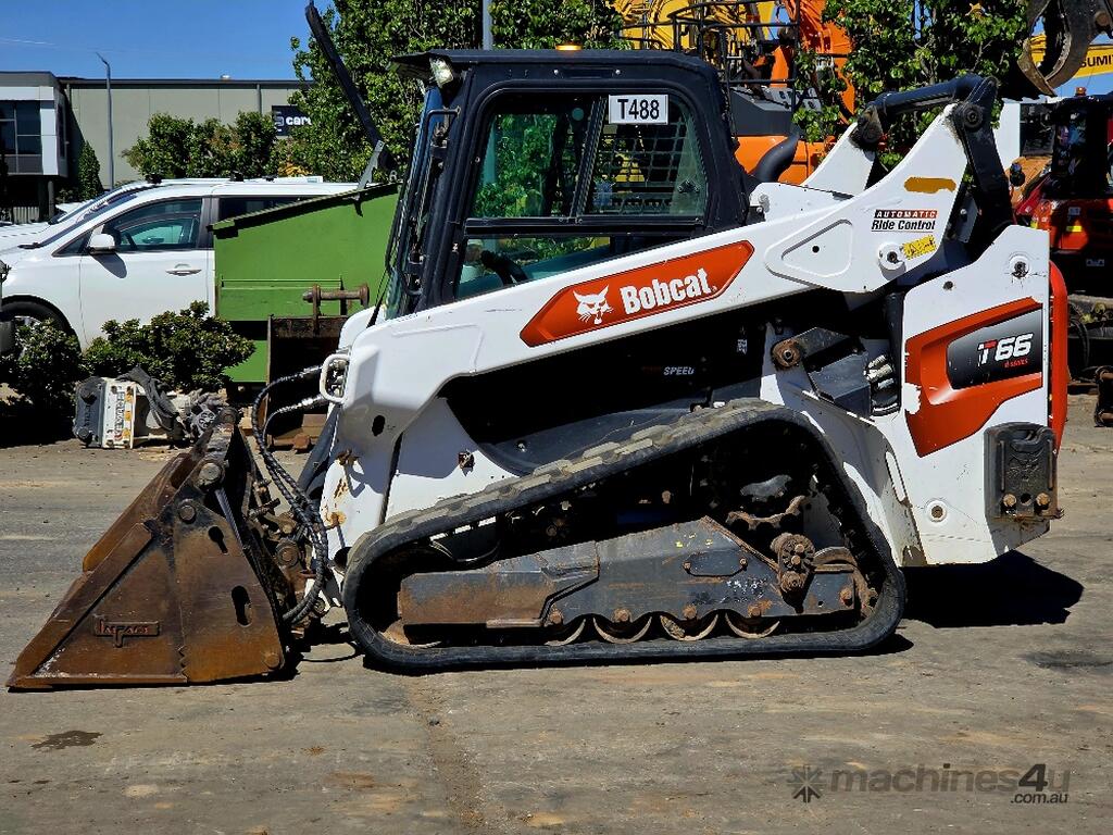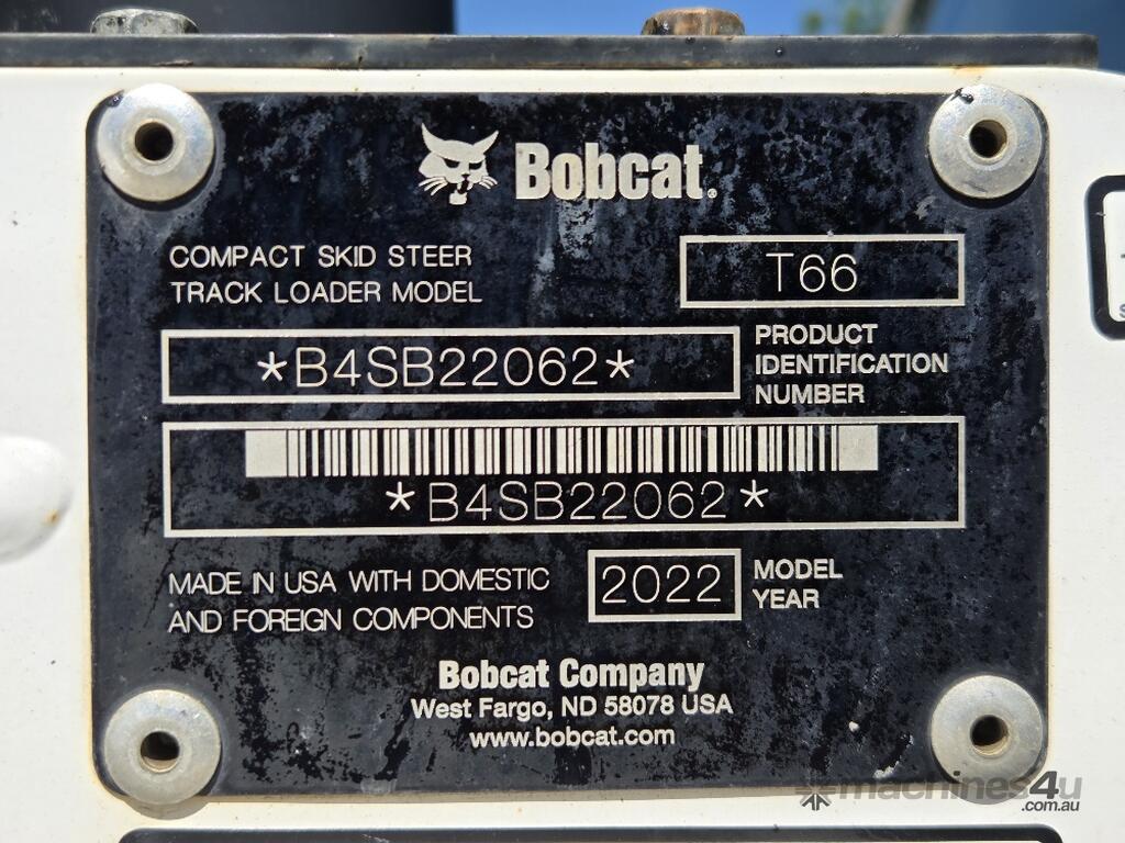 USED 2022 BOBCAT T66 TRACK LOADER (T488) WITH LOW 1705 HRS IN GOOD CONDITION WITH C88 COMFORT PACKAGE, P29 PERFORMANCE PACKAGE, RIDE CONTROL, WIDE SERIES RUBBER TRACKS, 4 IN 1 BUCKET, 75HP TURBO DIESEL, VERTICAL LIFT LOADER ARMS, FULL A/C PRESSURISED CABIN WITH ROPS, HYDRAULIC QUICK HITCH, PREMIUM CAB OPTIONS, 2 SPEED TRAVEL, REAR VIEW CAMERA, WORK LIGHTS, BT RADIO, UHF RADIO, BATTERY ISOLATOR, E-STOPS, JOYSTICK CONTROLS, EXTRA COUNTERWEIGHTS, 4049KG OPERATING WEIGHT AND RISK ASSESSMENT. COMES WITH 3-MONTH DRIVETRAIN WARRANTY.