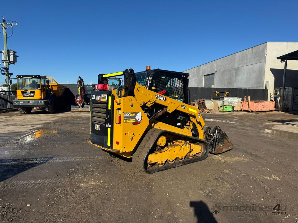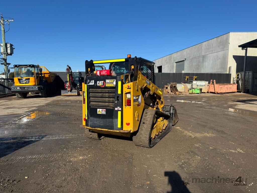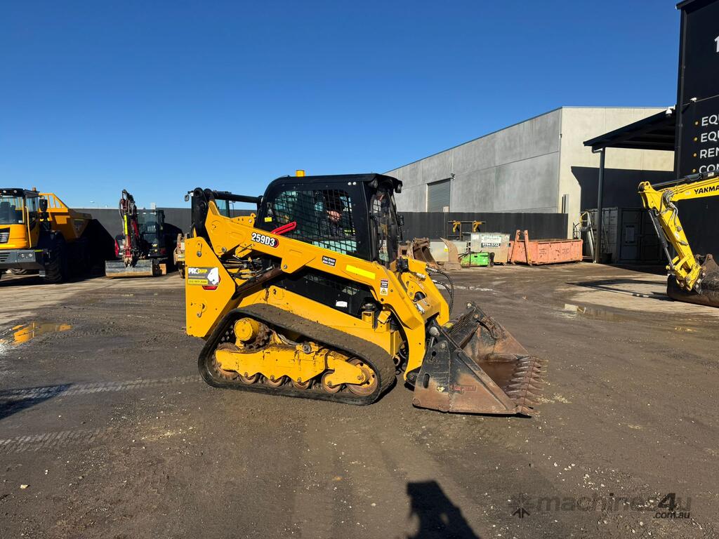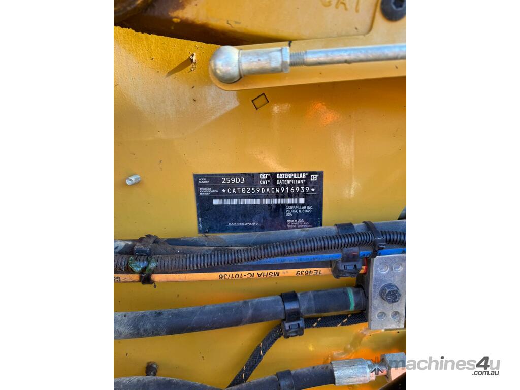 USED 2022 CAT 259D3 SKID STEER LOADER (T508) WITH HIGH FLOW AUXILIARY HYDRAULICS, LOW 1195 HRS IN VERY GOOD CONDITION WITH WIDE SERIES RUBBER TRACKS, 4 IN 1 BUCKET, 75HP TURBO DIESEL, VERTICAL LIFT LOADER ARMS, FULL A/C PRESSURISED CABIN WITH ROPS, HYDRAULIC QUICK HITCH, RIDE CONTROL, PREMIUM CAB OPTIONS, 2 SPEED TRAVEL, REAR VIEW CAMERA, WORK LIGHTS, BT RADIO, UHF RADIO, BATTERY ISOLATOR, E-STOPS, AUXILIARY ELECTRICS, JOYSTICK CONTROLS, 4076KG OPERATING WEIGHT AND RISK ASSESSMENT.
