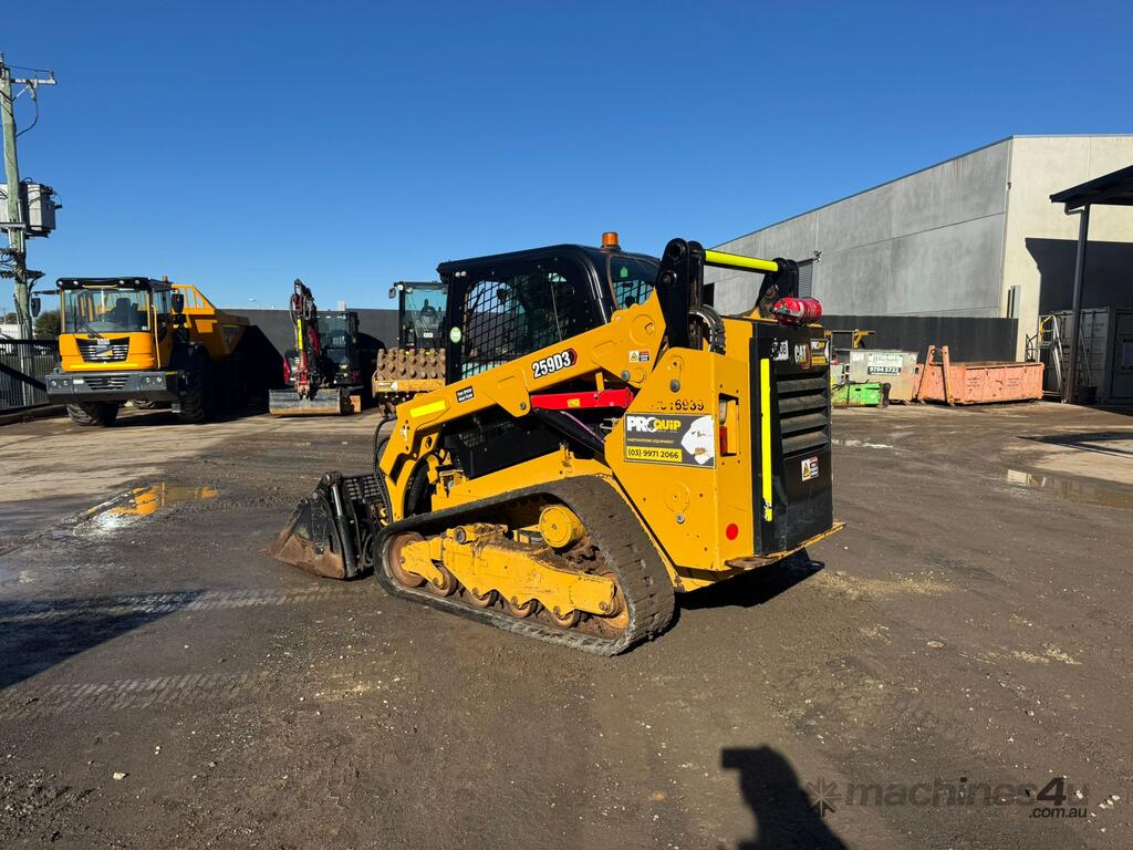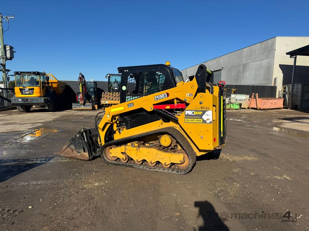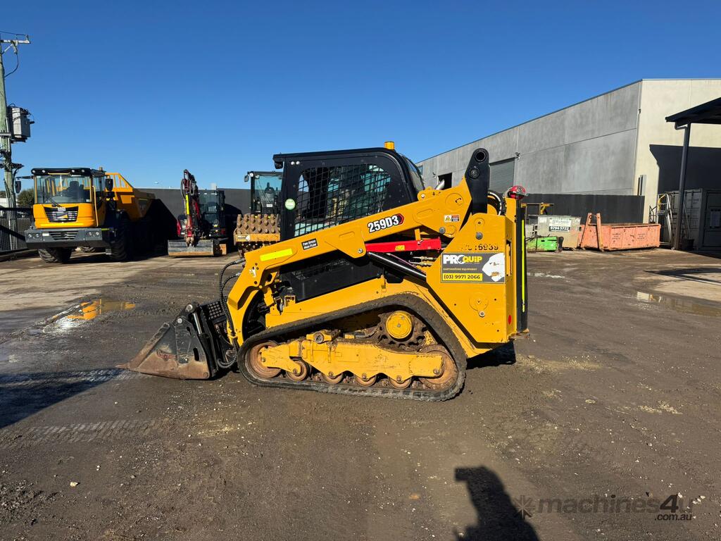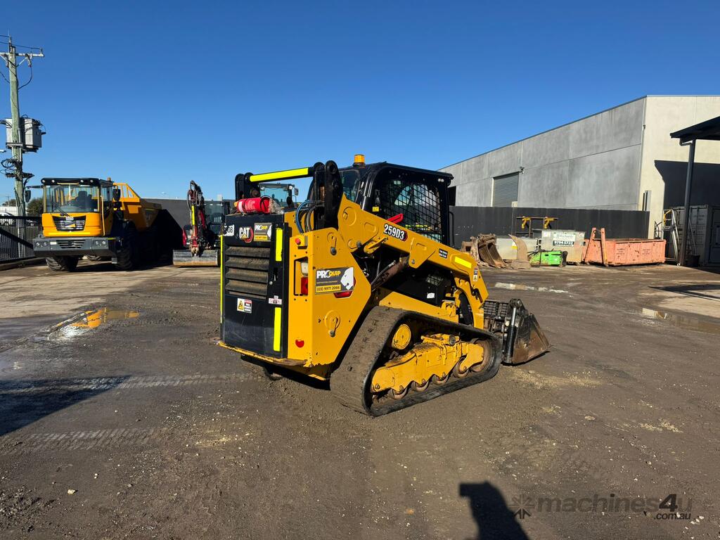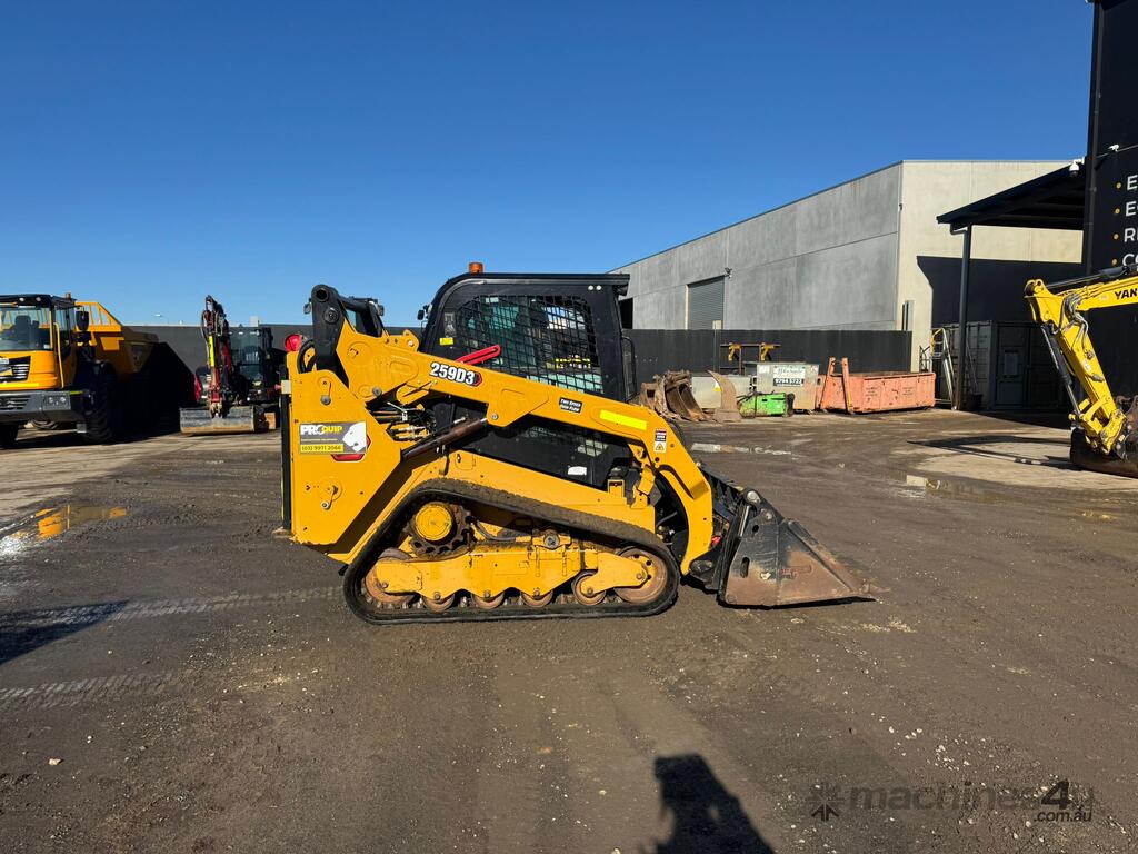 USED 2022 CAT 259D3 SKID STEER LOADER (T508) WITH HIGH FLOW AUXILIARY HYDRAULICS, LOW 1195 HRS IN VERY GOOD CONDITION WITH WIDE SERIES RUBBER TRACKS, 4 IN 1 BUCKET, 75HP TURBO DIESEL, VERTICAL LIFT LOADER ARMS, FULL A/C PRESSURISED CABIN WITH ROPS, HYDRAULIC QUICK HITCH, RIDE CONTROL, PREMIUM CAB OPTIONS, 2 SPEED TRAVEL, REAR VIEW CAMERA, WORK LIGHTS, BT RADIO, UHF RADIO, BATTERY ISOLATOR, E-STOPS, AUXILIARY ELECTRICS, JOYSTICK CONTROLS, 4076KG OPERATING WEIGHT AND RISK ASSESSMENT.