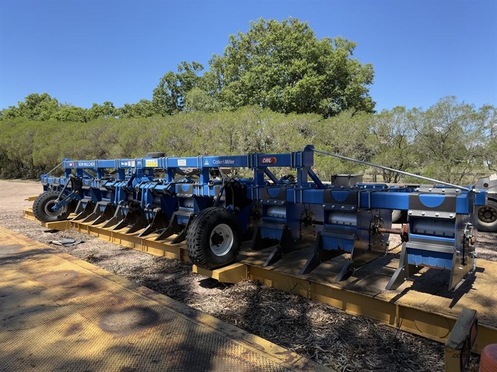 2022 Collier & Miller 12m Row Mulcher, Serial Number CMCRM2119955, 12 rows at 1m spacing, as new only worked approximately 50 hectares. Assortment of new parts and transport stands included. Dimensions: length 12m, width 3.2m; tyres off for transport: 2.5m. Trailer not included. Loading available. Located in Goondiwindi, QLD.
