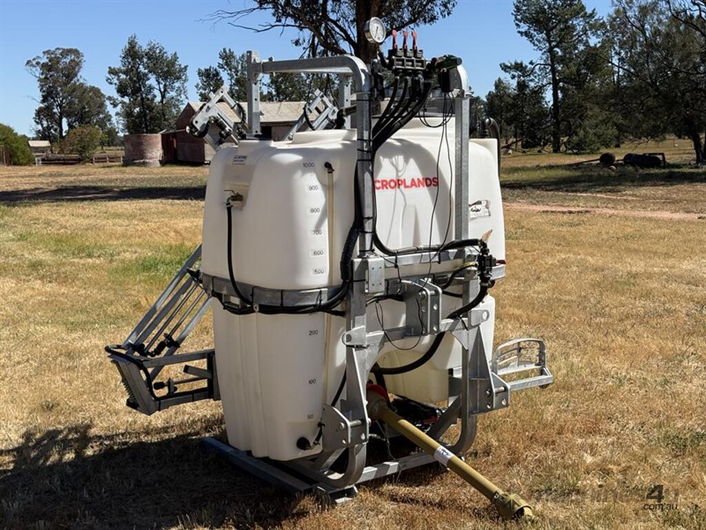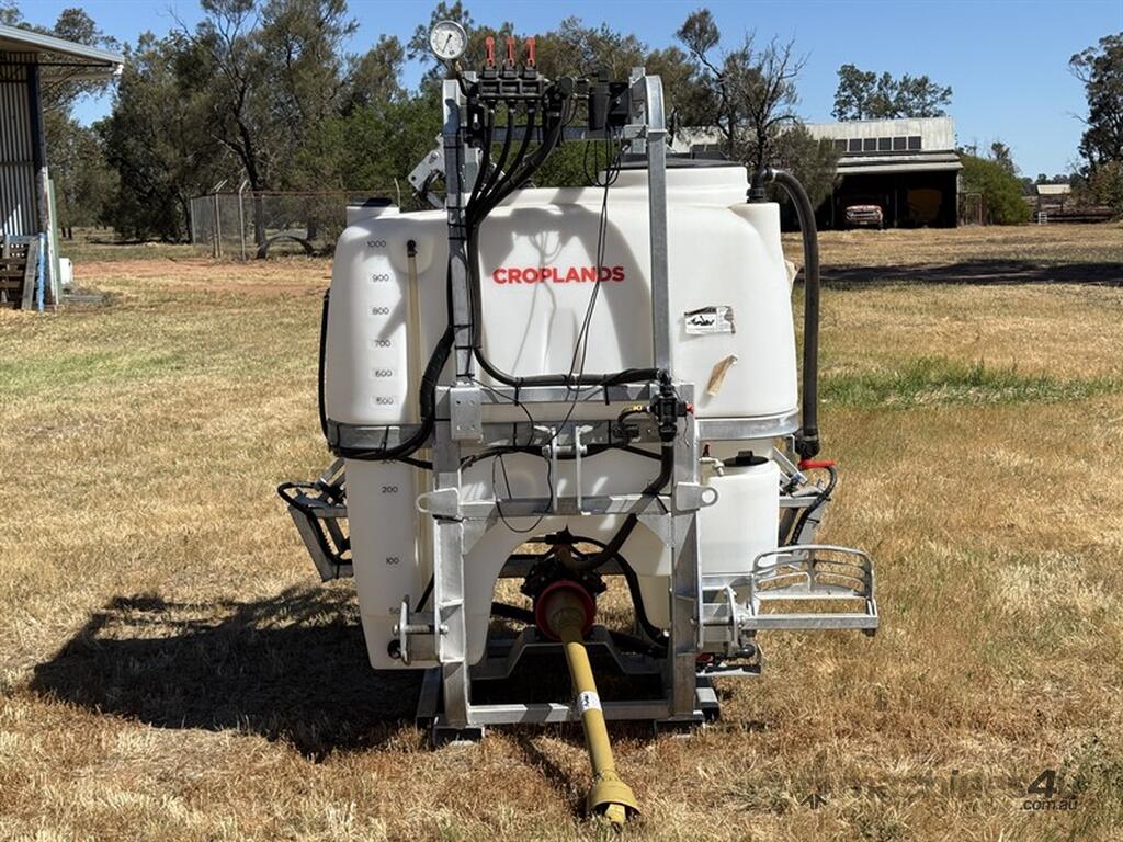 2022 Croplands 10M Boomspray. SN: S. As new 3pl 1000lt boomspray. PTO operated pump with manual folding oscillating 10m boom. 3-way boom section control. Manual rate controller, inline filter system. Flush and hand wash tank. Tractor cab control box, all galvanised frame construction. As new condition, only sprayed 150 hectares from new. 2.05 folded up, 1.5m long. Located, Wyalong NSW.
