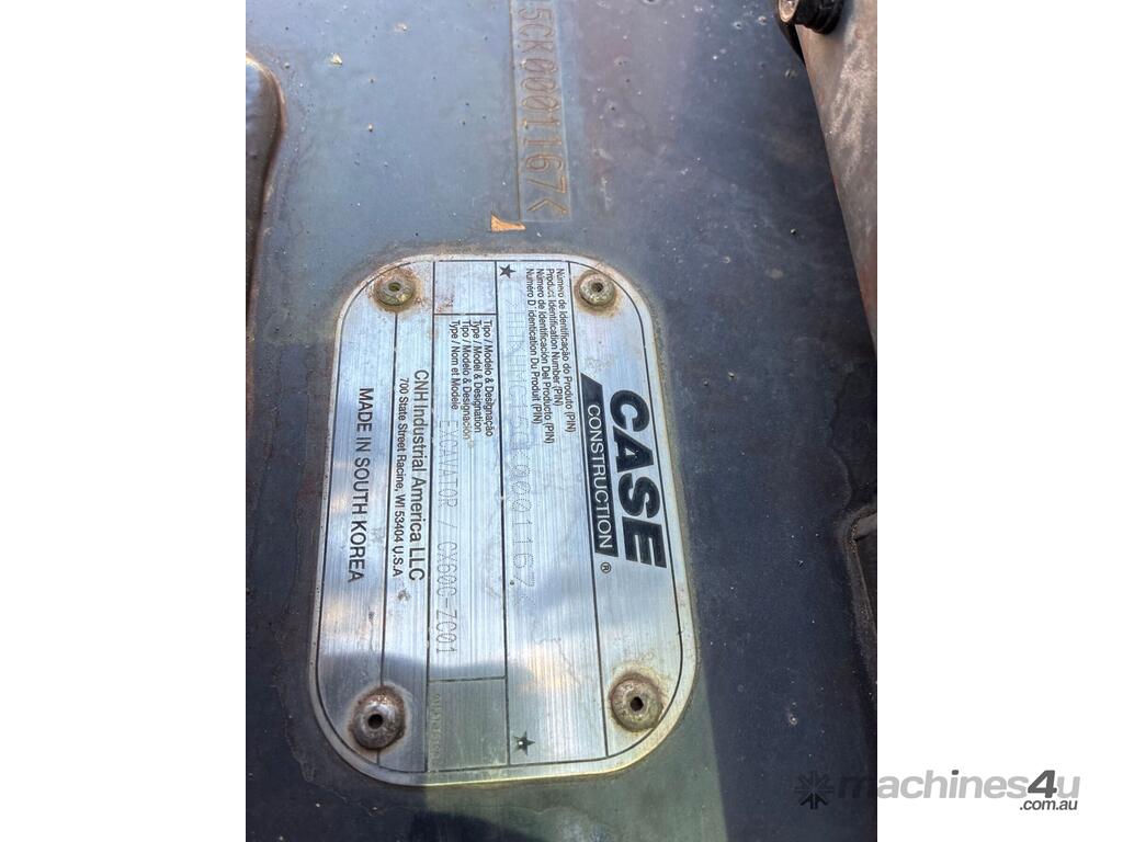CP: CIRCA 2022,Case,CX60C,Excavator (Rubber Tracked),4 Cyl,Diesel,Odometer not visible,976 (Hrs. Showing on Hour meter),Rego. No: NP(85670C), Unregistered,Serial No: HHKHMC15CK0001167,Sold with No Plates