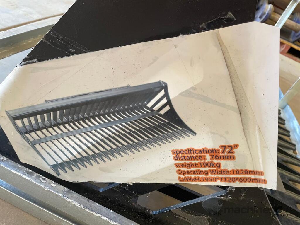This custom 72" rock bucket is built tough for demanding skid steer and loader applications. Ideal for sorting rocks and debris on construction or landscaping sites.