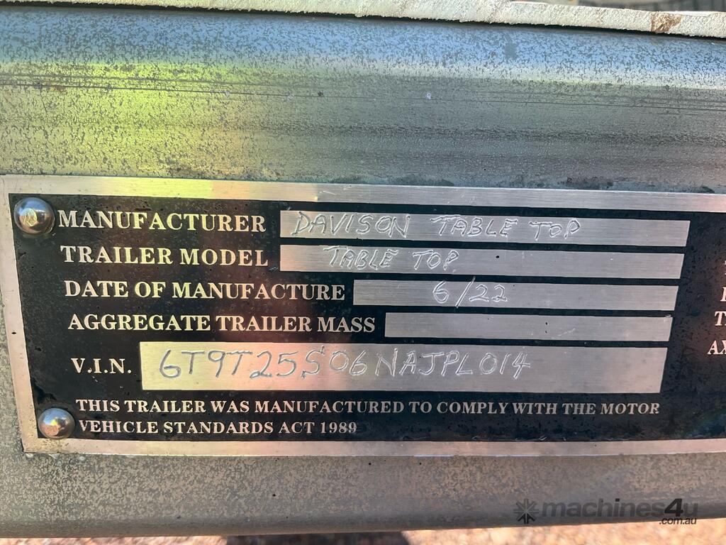 No C/P,Built: 06/2022,Davison,Table Top ,Dual Axle Tipper,Hubometer not visible,Colour: Silver,Rego. No: NP(TQ6208), Unregistered,VIN: 6T9T25S06NAJPL014,Sold with No Plates