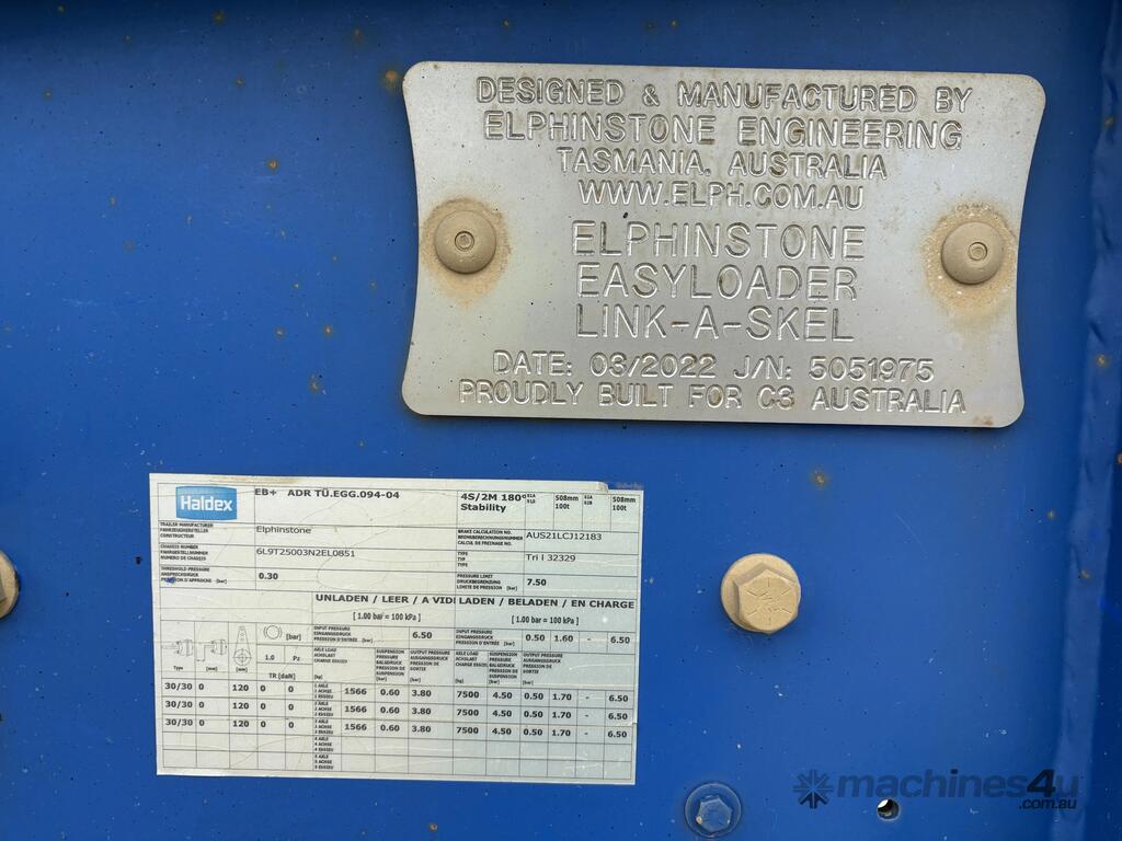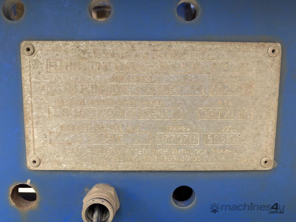 CP: CIRCA 2022,Built: 03/2022,Elphinstone,AirRider,Tri Axle Logging Trailer Combination,89671 (Kms. Showing on Hubometer),Colour: Blue,Unregistered,VIN: 6T9T25003N2EL0851,Sold with No Plates