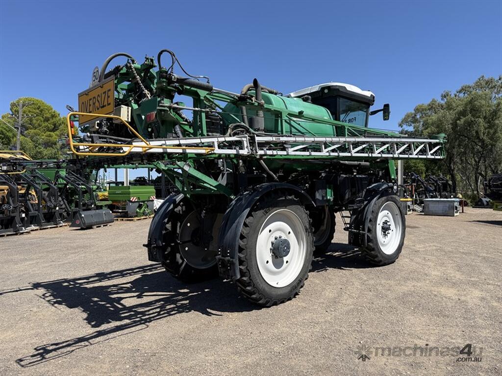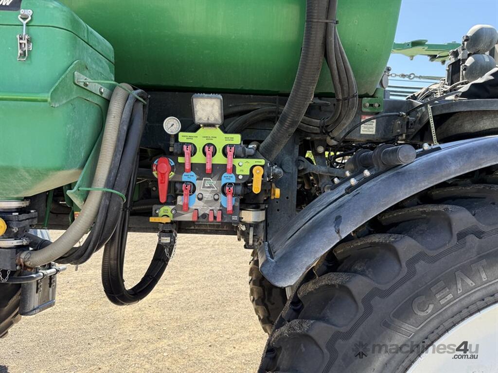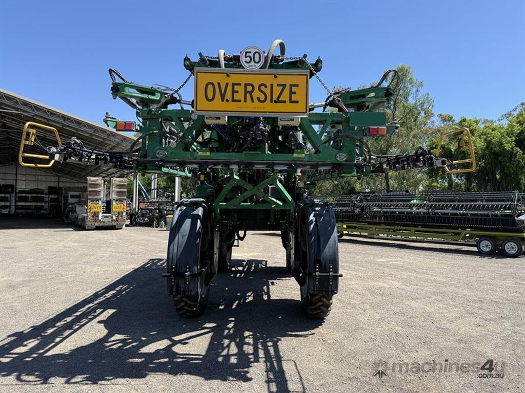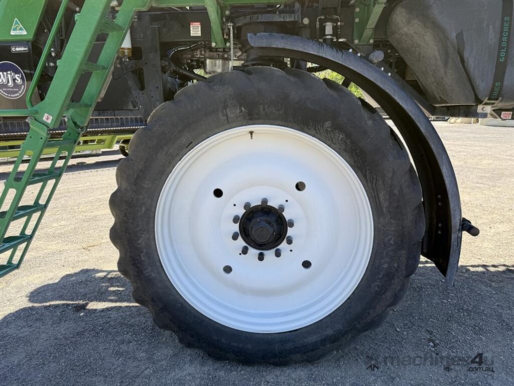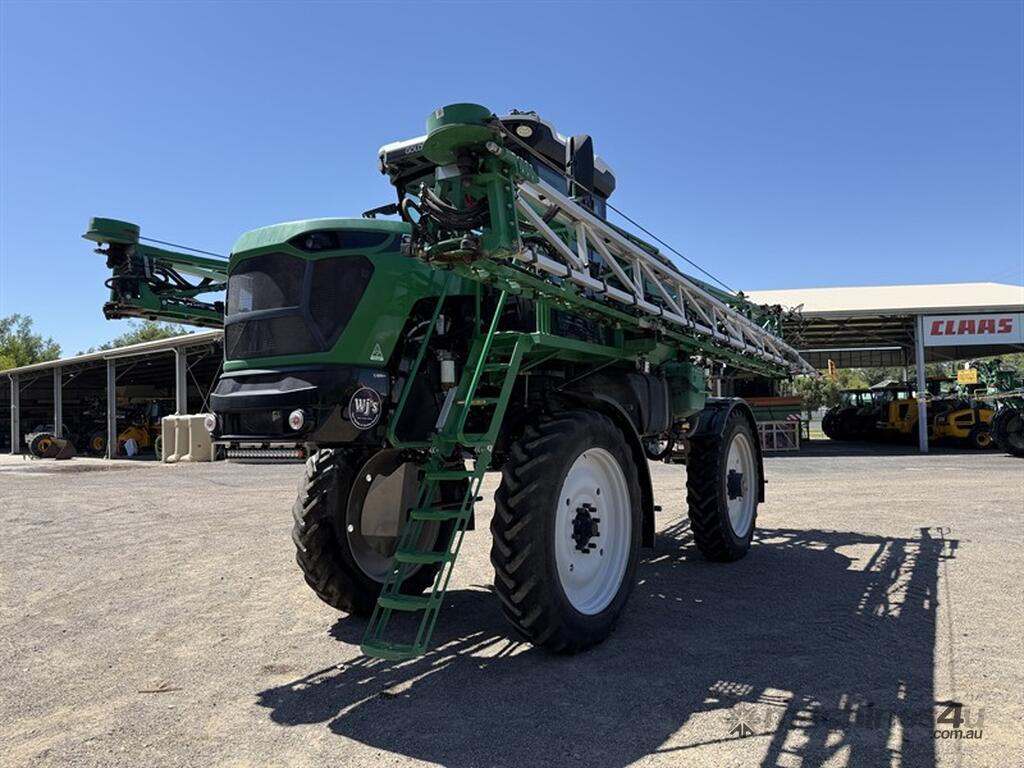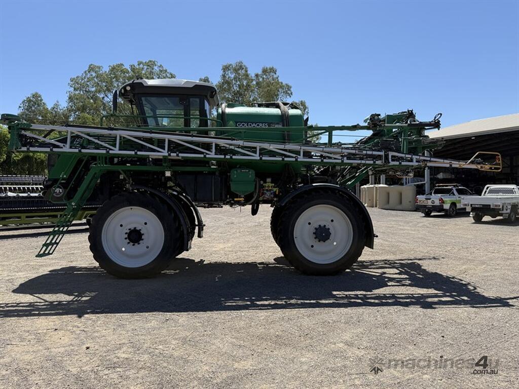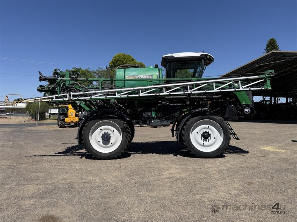 2022 Goldacres G4 Sprayer. showing 3,135hrs, with 4,000lt product tank, 36m Tri Tech boom plumbed on 25cm spacing with Trijets at every 50cm, boom recirculation system on air shut-off valves, 2-3m hydraulically adjustable axle, new hydraulic cabin mounts upgrade, John Deere steer ready & paddock ready - one owner only. Located at Moree NSW, available at MRE Auctions online sale.