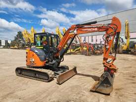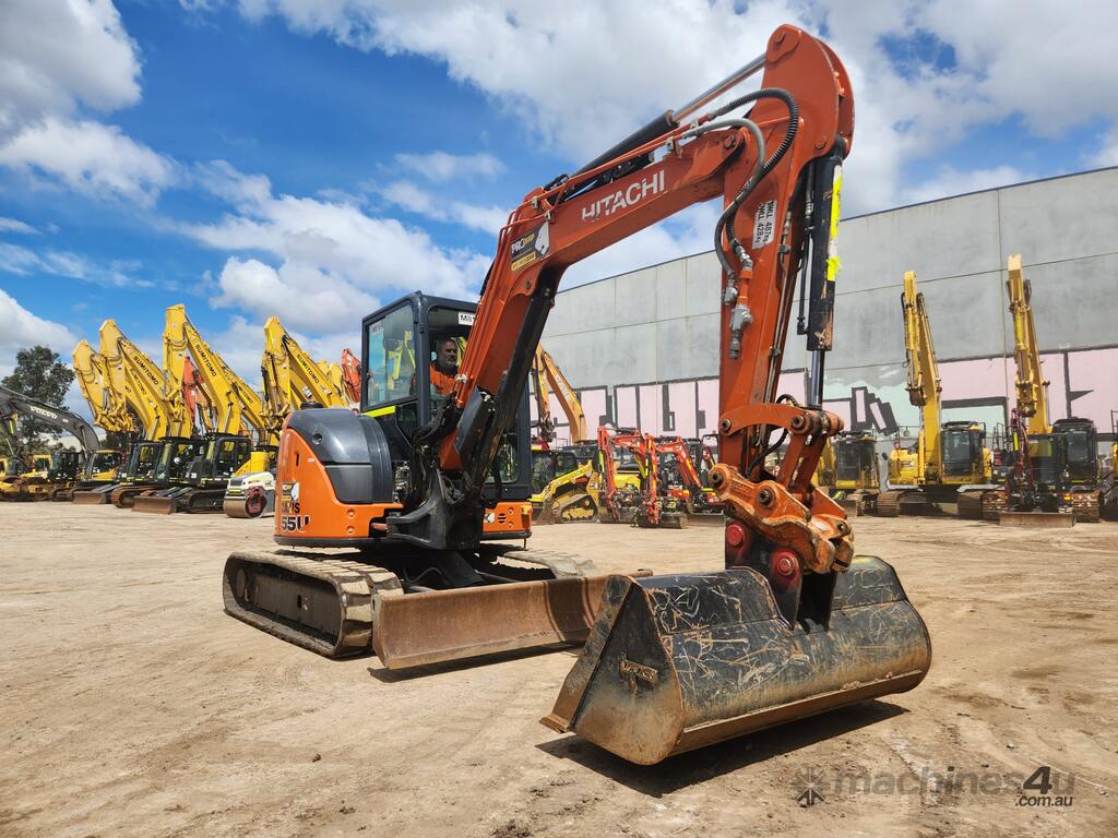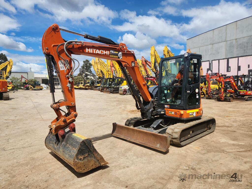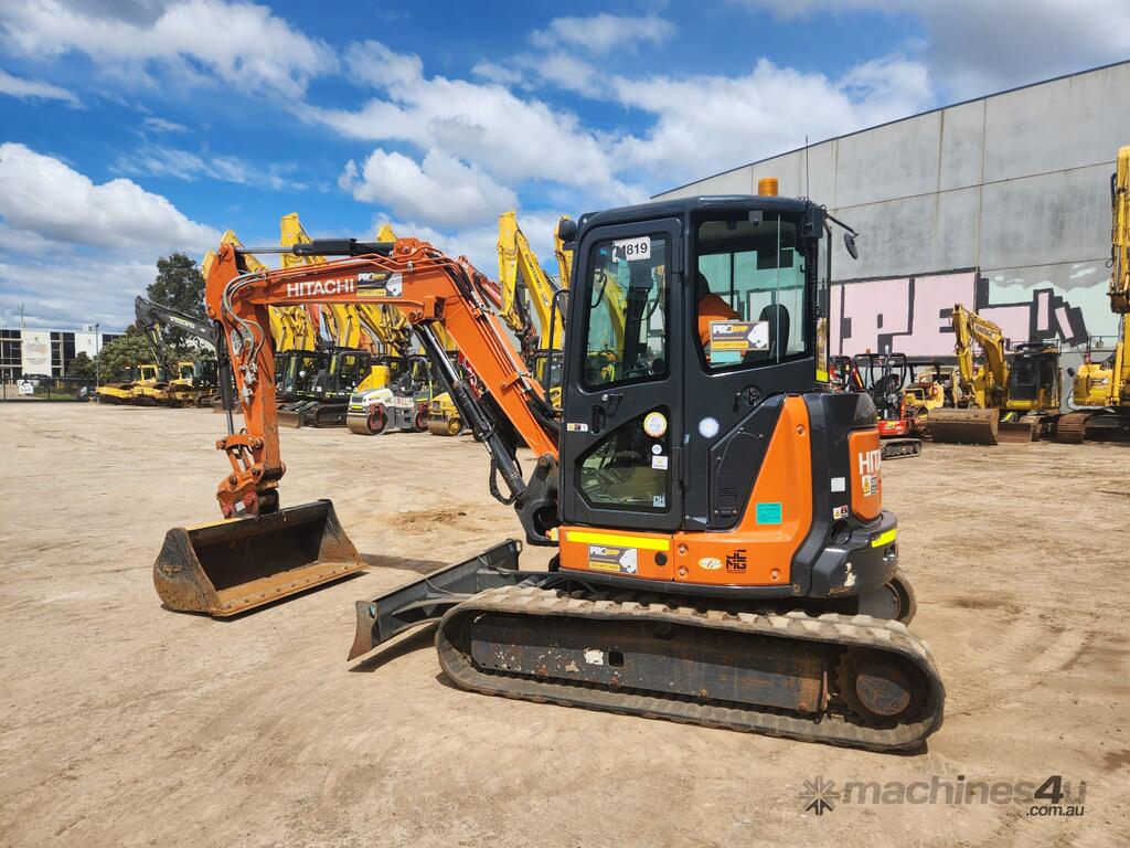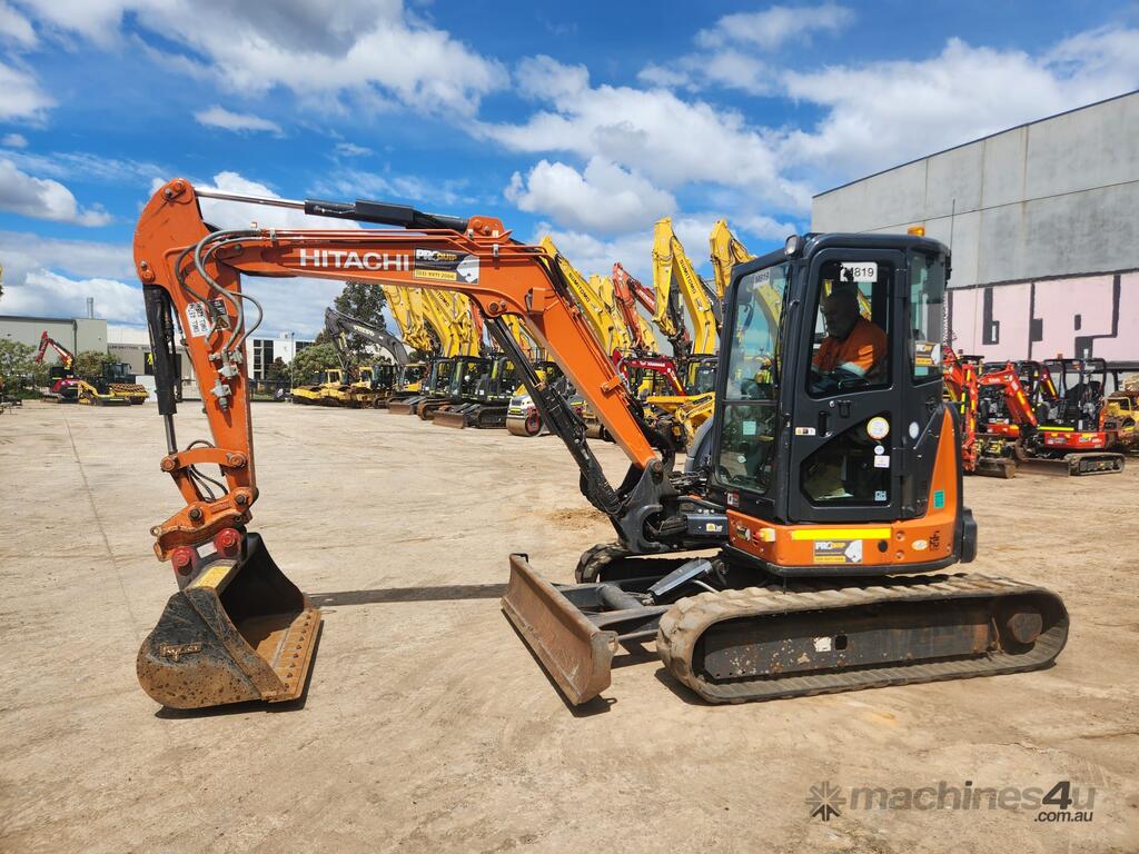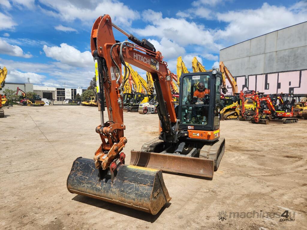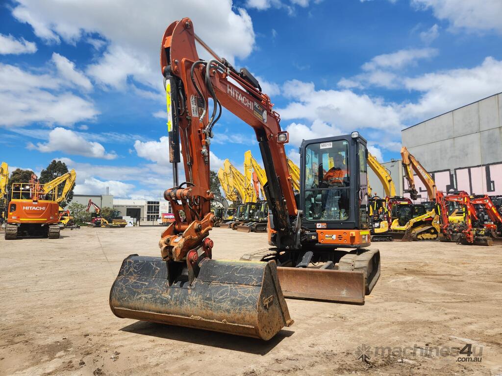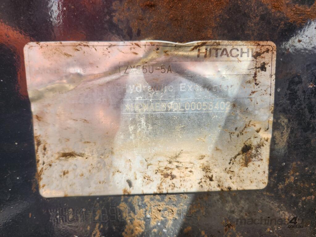 2022 HITACHI ZX55U-5 ZERO SWING EXCAVATOR (M819) WITH FULL A/C CABIN, LOW 1420 HRS. HYDRAULIC SAFETY HITCH, DOZER BLADE, DUAL HAMMER AND AUGER PIPING, RUBBER TRACKS, 2 SPEED, 300, 450 & 600MM DIG BUCKETS, MUD BUCKET WITH BOE, FULL CIVIL SPEC WITH UHF RADIO, E-STOPS, BATTERY ISOLATOR, SAFETY BEACON AND TRAVEL ALARM, RISK ASSESSMENT, FULL SERVICE HISTORY, AUSTRALIAN DELIVERED FEBRUARY 2022, ONE OWNER, VERY TIDY MACHINE, FULL SERVICE HISTORY, READY FOR WORK. 3-MONTH DRIVETRAIN WARRANTY