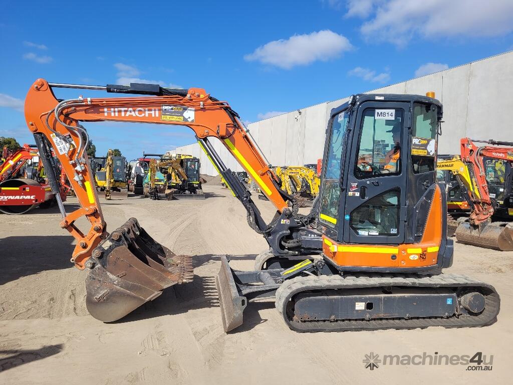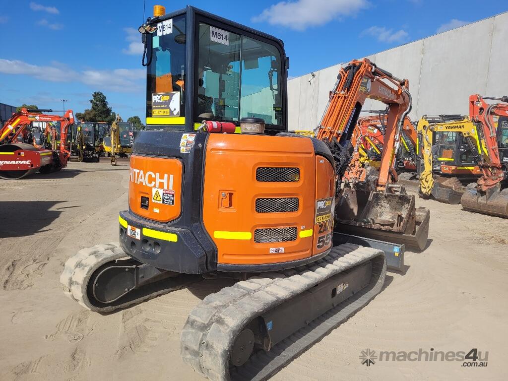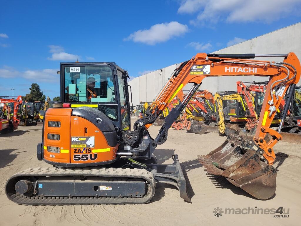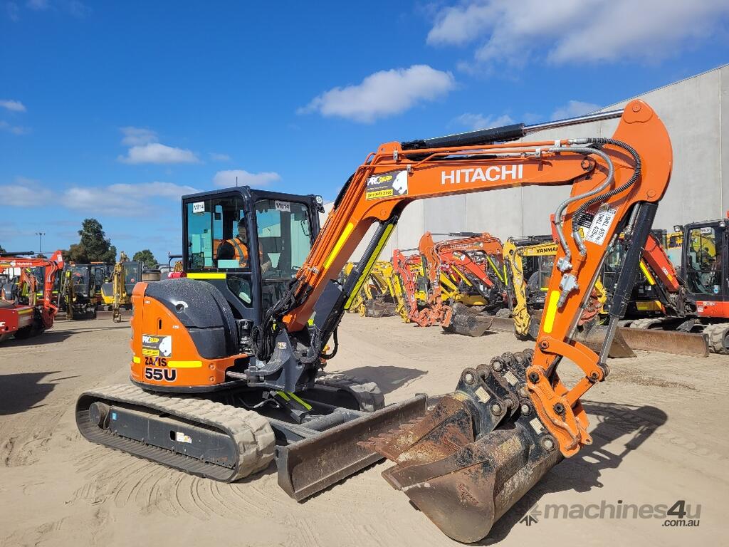 2022 HITACHI ZX55U-5 ZERO SWING EXCAVATOR WITH FULL A/C CABIN, LOW 475 HOURS. HYDRAULIC SAFETY HITCH, DOZER BLADE, DUAL HAMMER AND AUGER PIPING, RUBBER TRACKS, 2 SPEED, 300, 450 & 600MM DIG BUCKETS, MUD BUCKET WITH BOE, FULL CIVIL SPEC WITH UHF RADIO, E-STOPS, BATTERY ISOLATOR, SAFETY BEACON AND TRAVEL ALARM, RISK ASSESSMENT, FULL SERVICE HISTORY, AUSTRALIAN DELIVERED JANUARY 2022, ONE OWNER, VERY TIDY MACHINE, READY FOR WORK. FACTORY WARRANTY TO JANUARY 2025..