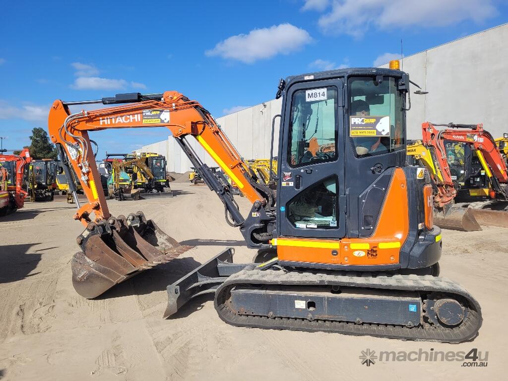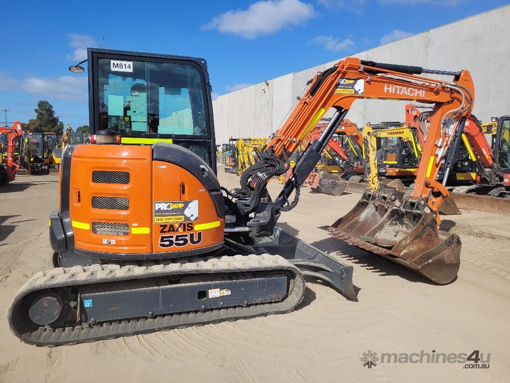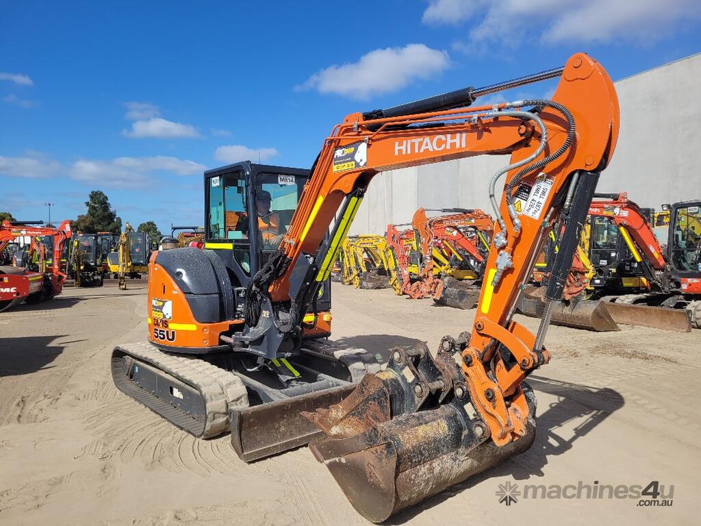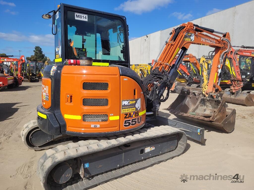 2022 HITACHI ZX55U-5 ZERO SWING EXCAVATOR WITH FULL A/C CABIN, LOW 475 HOURS. HYDRAULIC SAFETY HITCH, DOZER BLADE, DUAL HAMMER AND AUGER PIPING, RUBBER TRACKS, 2 SPEED, 300, 450 & 600MM DIG BUCKETS, MUD BUCKET WITH BOE, FULL CIVIL SPEC WITH UHF RADIO, E-STOPS, BATTERY ISOLATOR, SAFETY BEACON AND TRAVEL ALARM, RISK ASSESSMENT, FULL SERVICE HISTORY, AUSTRALIAN DELIVERED JANUARY 2022, ONE OWNER, VERY TIDY MACHINE, READY FOR WORK. FACTORY WARRANTY TO JANUARY 2025..
