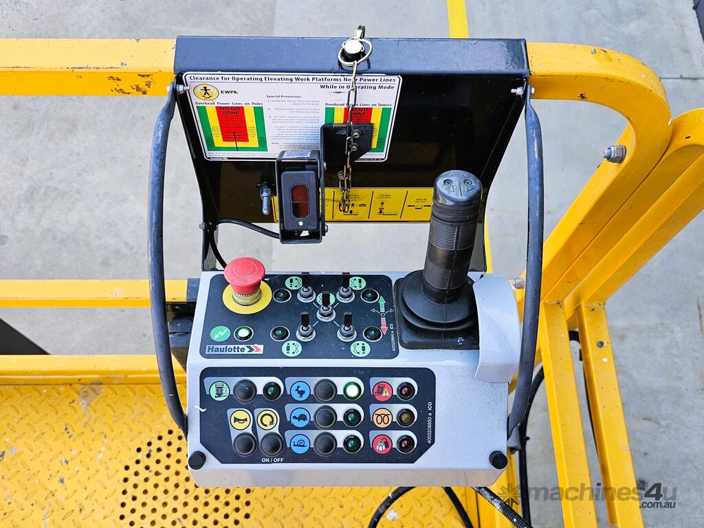 The 2022 Haulotte Compact 12DX has 271 hours and commission from 9/2022. Able to traverse all kinds of rough terrains and with a 40% gradability, it'll also drive right onto transport with no need for a winch. It is only 1.78m wide with a stowed height of 2.56m making this machine compact enough to fit through many narrower spaces while allowing for a maximum raised deck of 10.06m.