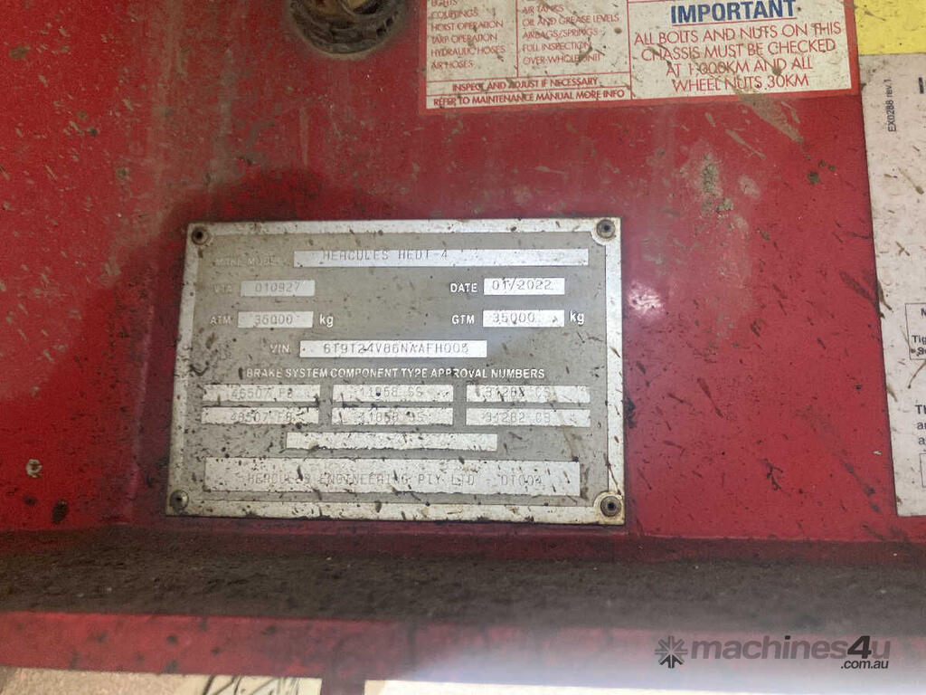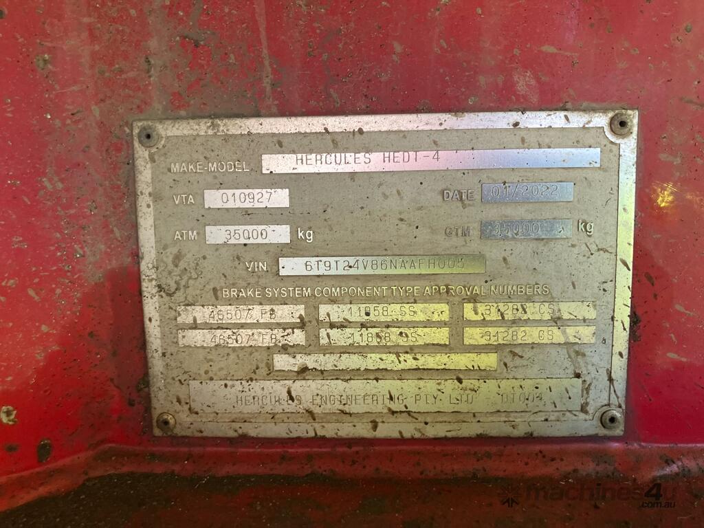 CP: 01/2022,Hercules,HEDT-4,Quad Axle Tipping Dog Trailer,0 (undefined),Colour: Silver,Rego. No: NP(YB25AW), Unregistered QLD,VIN: 6T9T24V86NAAFH005,Sold with No Plates,WOVR Status: Repairable Write-Off,Incident Type: Impact