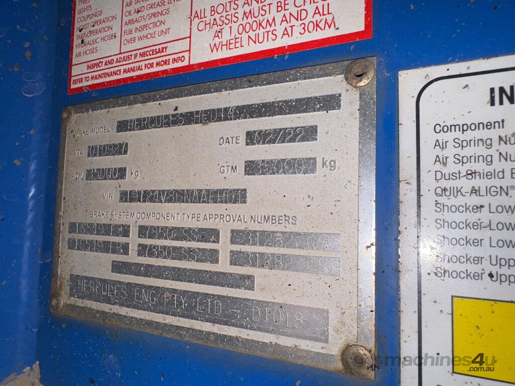 CP: 02/2022,Hercules,HEDT-4,Quad Axle Tipping Dog Trailer,Hubometer not visible,Colour: Silver,Rego. No: NP(YN83QT), Unregistered NSW,VIN: 6T9T24V86NAAFH018,Sold with No Plates,WOVR Status: Repairable Write-Off,Incident Type: Impact