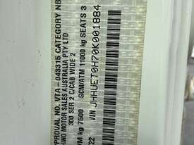 CP: 03/2022,Hino,300 817,Tipper,Manual,Spring ,Engine #: N04CUT29082,4 Cyl,Diesel Turbo,6 Gears,25396 (Kms. Showing on Odometer),Hourmeter not visible,Colour: White,Unregistered,VIN: JHHUET0H70K001884,Key No: 36S,Length: 6 m,GVM: 7500,GCM: 11000,Sold with No Plates,Key No: 36S