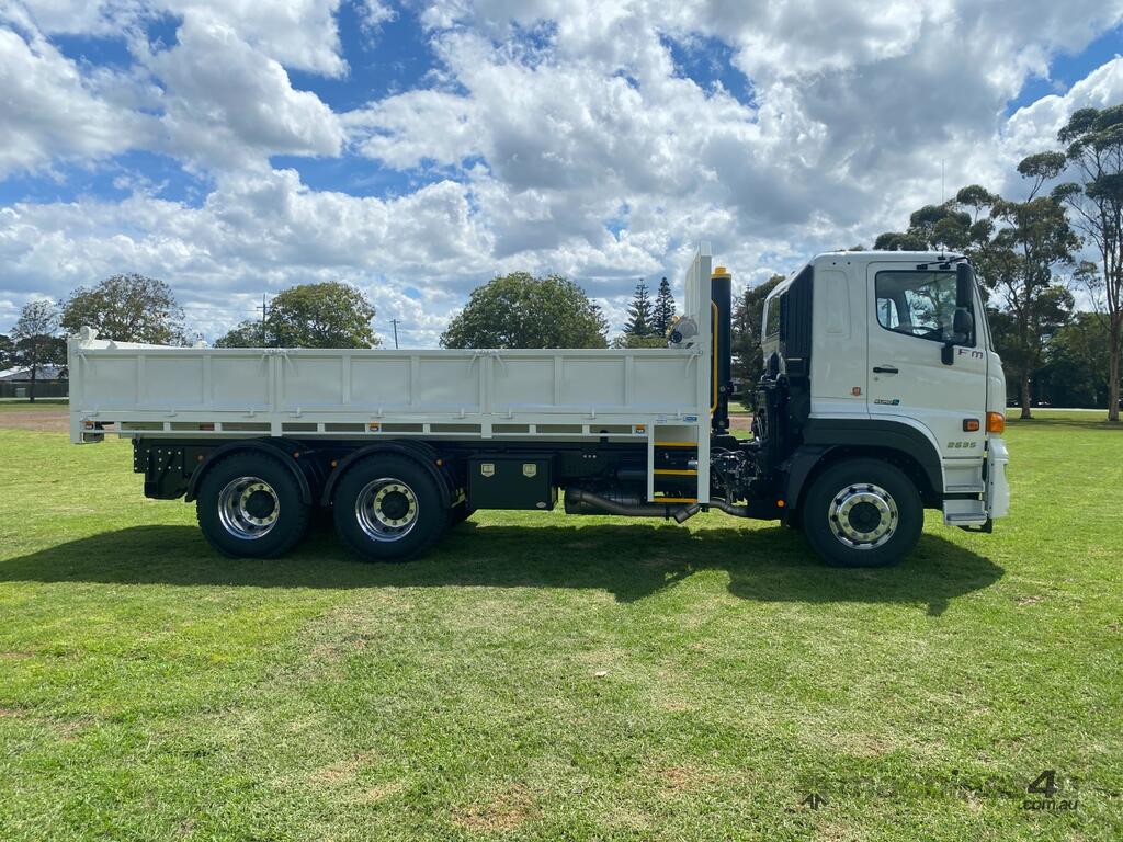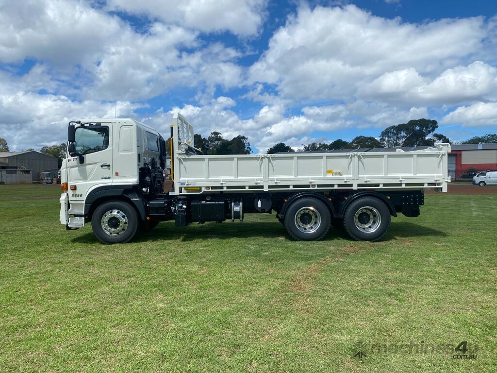 The Hino 500 Series FM 2635 Long Air is a powerful and versatile solution for construction, farming, and heavy-duty transport needs. Equipped with a 6-metre tipping body, this truck is designed for maximum efficiency. Its combination of strength and functionality includes triple aluminium removable dropsides, a two-way air tailgate, and 8 in-floor tie-down points, making it ideal for transporting various materials securely. With a 350hp engine, 9-speed manual transmission, and airbag rear suspension with ECAS, it offers reliable performance and a smooth ride, even on challenging terrain. Additional features such as a Bartlett tow hitch, integrated ABS and electrics, a toolbox, and a water tank further enhance its practicality. Built for tough environments, the Hino 500 Series FM 2635 Long Air is the perfect partner for construction projects, farming operations, and more.