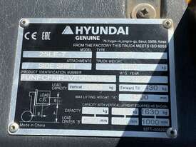 CP: CIRCA 2022,Hyundai,25LE-7,Container Mast Forklift,Engine #: GK25148585,4 Cyl,LPG only,Odometer not visible,126 (Hrs. Showing on Hour meter),Colour: Yellow,Unregistered,VIN: UNFCFMR3VF0000134,Serial No: UNFCFMR3VF0000134,Sold with No Plates,Key No: 416E