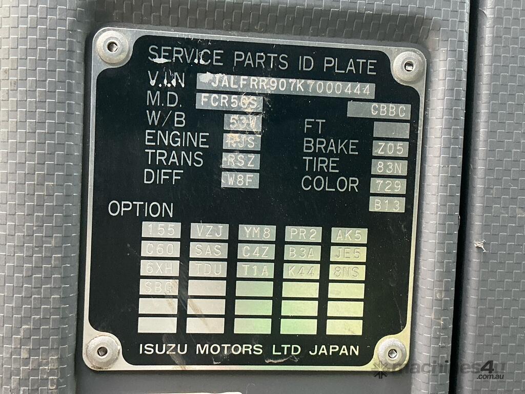 CP: 02/2022,Isuzu,FRR 107-210,Curtainsider,Automatic,Diesel,Odometer not visible,Hourmeter not visible,Colour: White,Rego. No: NP(XW19AK), Unregistered NAT,VIN: JALFRR907K7000444,Sold with No Plates,WOVR Status: WOVR N/A,Incident Type: Impact