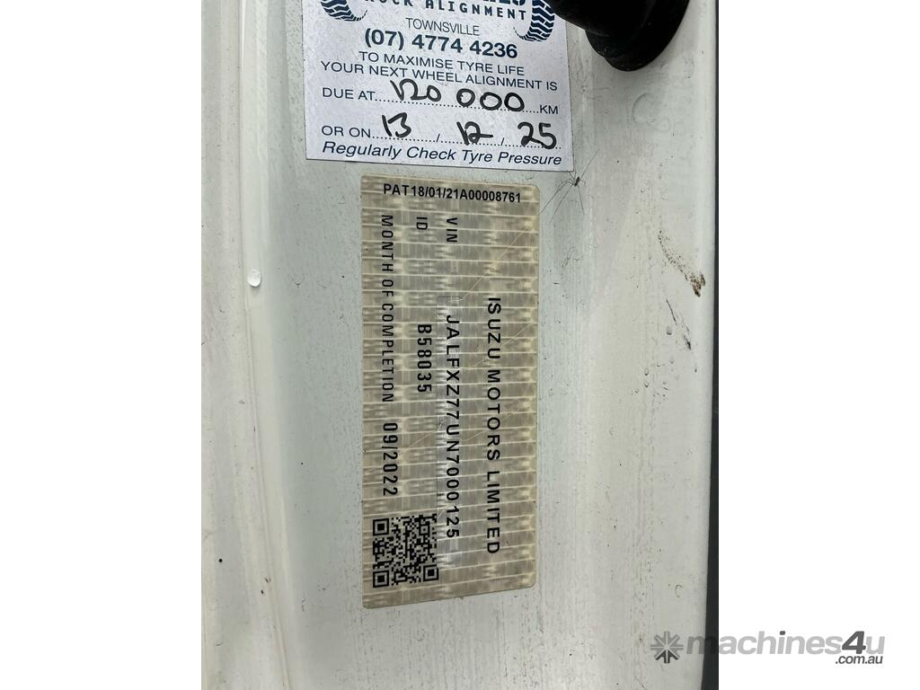 CP: CIRCA 2022,Isuzu,FXZ240-350,Flat Top Cargo Truck,Automatic,Leaf Suspension ,Isuzu,6 Cyl,Diesel,Odometer not visible,Hourmeter not visible,Colour: White,Rego. No: XB57LD QLD,VIN: JALFXZ77UN7000125,Sold with No Plates,WOVR Status: Statutory Write-Off,Incident Type: Impact