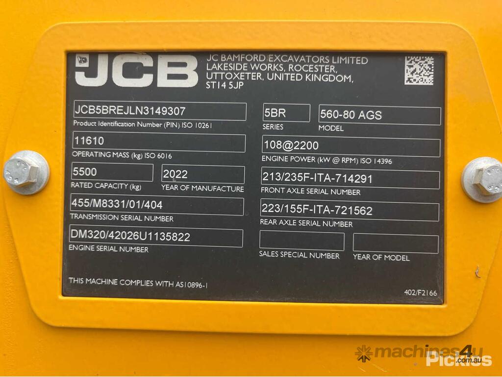 CP: CIRCA 2022,JCB,550-80,Telehandler,4 Cyl,Diesel Turbo,Odometer not visible,Hourmeter not visible,Colour: Yellow,Unregistered,Serial No: JCB5BREJLN3149307,Sold with No Plates,WOVR Status: Repairable Write-Off,Incident Type: Impact