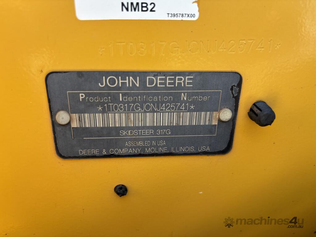 CP: CIRCA 2022,John Deere,317G,Skid Steer (Rubber Tracked),Diesel,Odometer not visible,938 (Hrs. Showing on Hour meter),Colour: Yellow,Unregistered,Serial No: 1T0317GJCNJ425741,Sold with No Plates