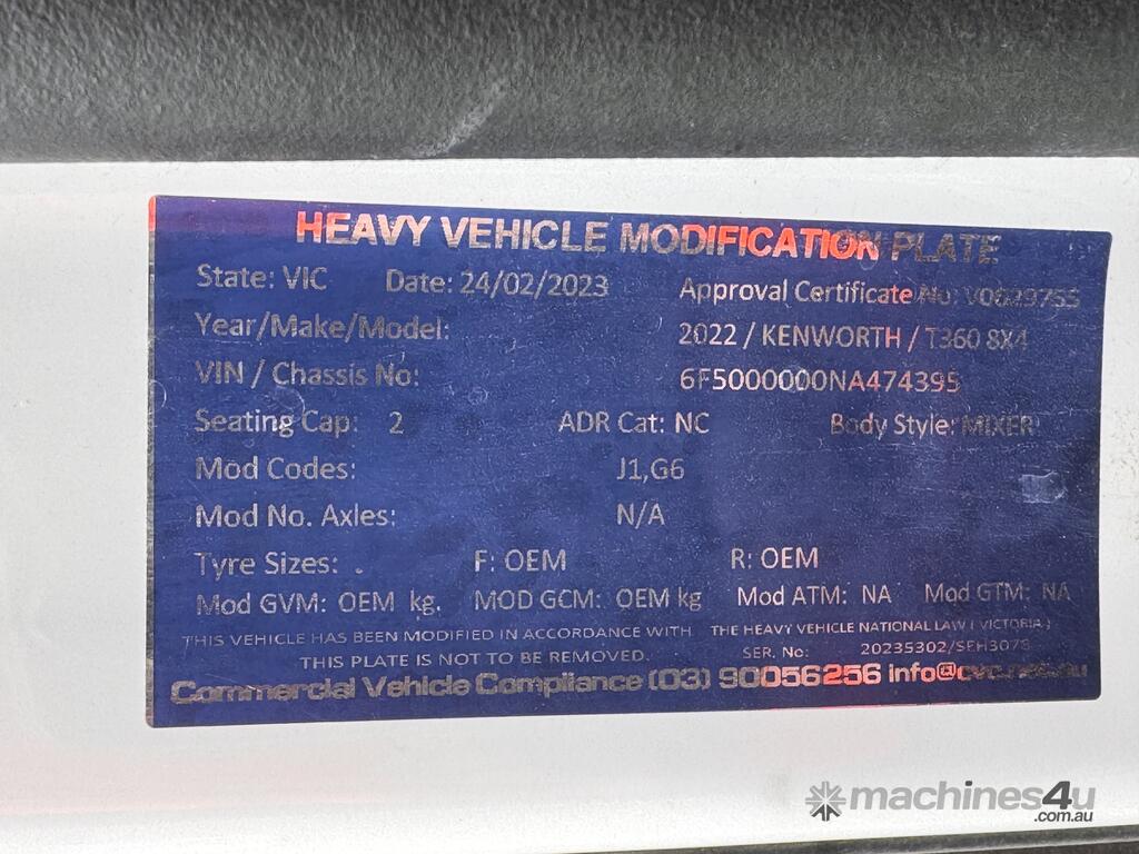 2022 KENWORTH T 360 8 X 4 CONCRETE AGITATOR TRUCK