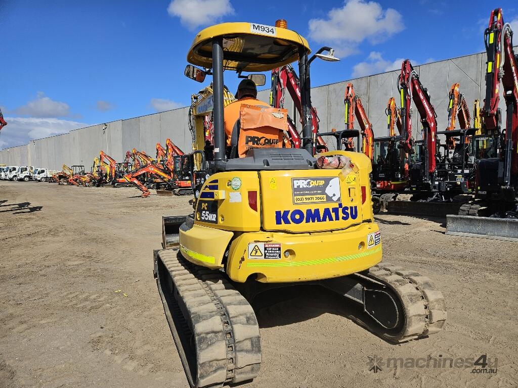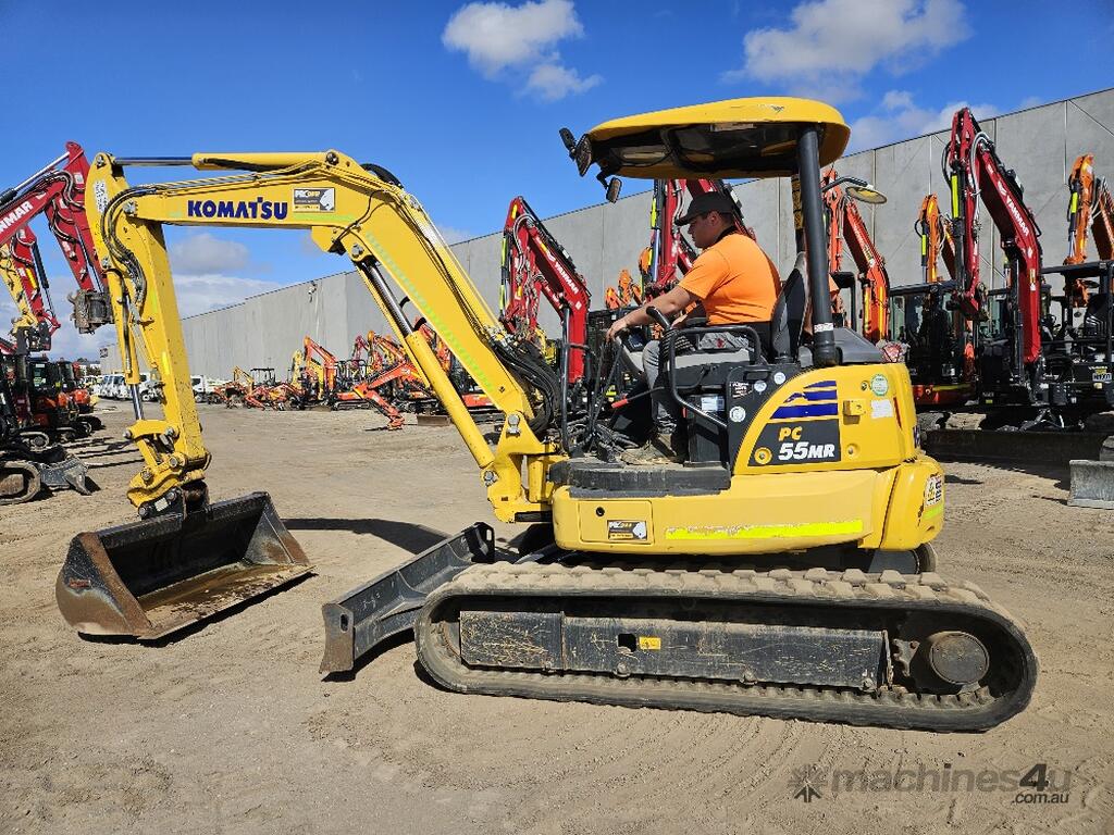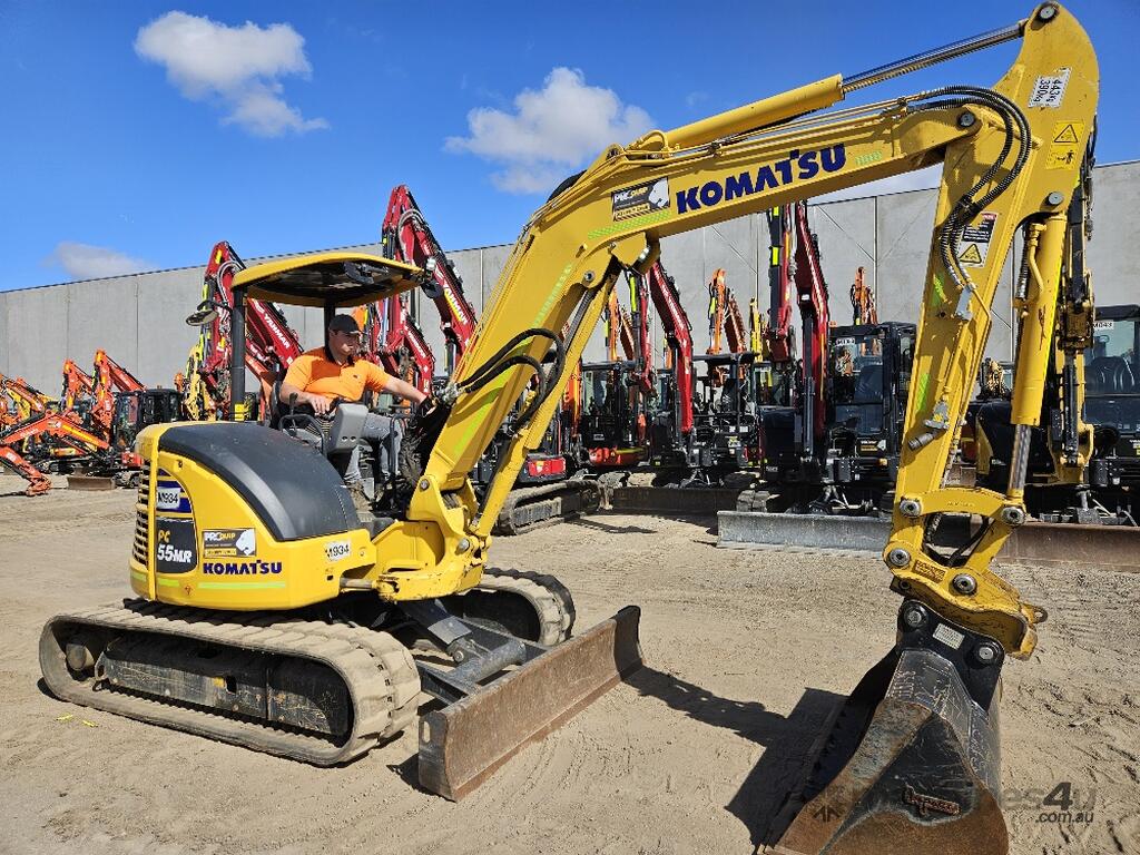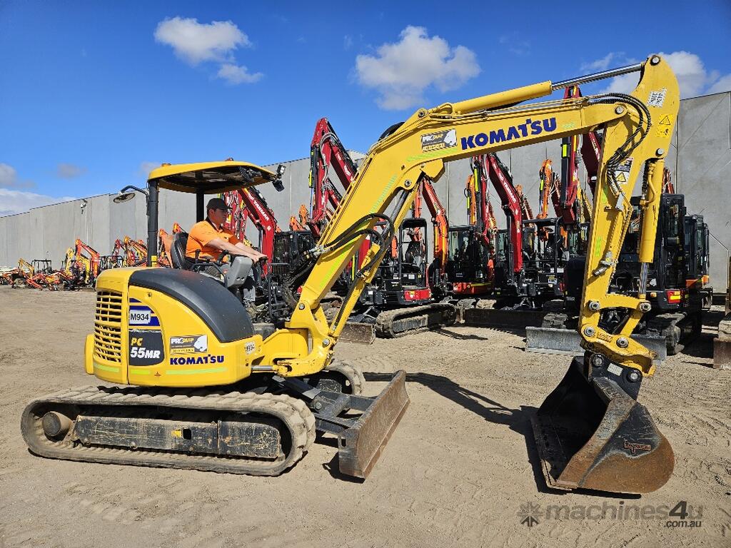 2022 KOMATSU PC55MR-5 5.5T ZERO SWING EXCAVATOR (M934) WITH ROPS CANOPY, LOW 500 HRS. HYDRAULIC SAFETY HITCH, DOZER BLADE, DUAL HAMMER AND AUGER PIPING, RUBBER TRACKS, 2 SPEED, 300, 450 & 600MM DIG BUCKETS, MUD BUCKET WITH BOE, FULL CIVIL SPEC WITH E-STOPS, BATTERY ISOLATOR, SAFETY BEACON AND TRAVEL ALARM, RISK ASSESSMENT, FULL SERVICE HISTORY, AUSTRALIAN DELIVERED MAY 2022, ONE OWNER, VERY TIDY MACHINE, READY FOR WORK. BALANCE OF FACTORY WARRANTY.