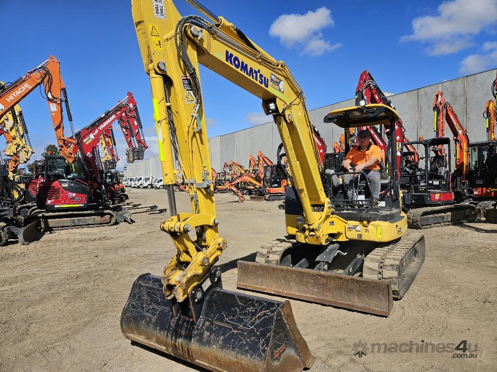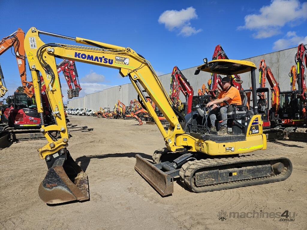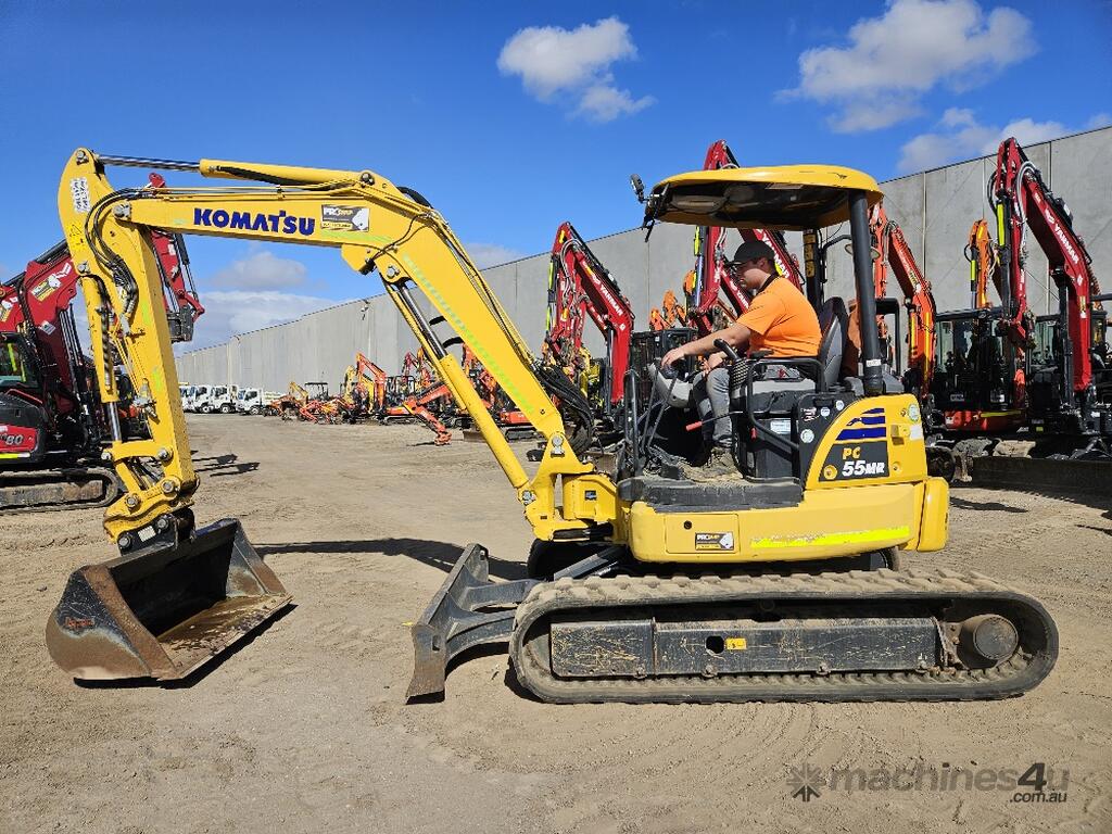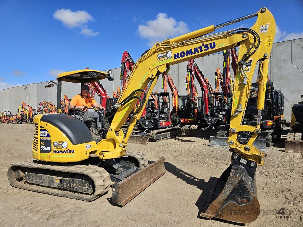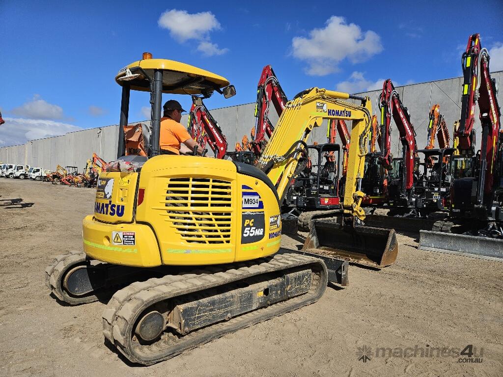 2022 KOMATSU PC55MR-5 5.5T ZERO SWING EXCAVATOR (M934) WITH ROPS CANOPY, LOW 500 HRS. HYDRAULIC SAFETY HITCH, DOZER BLADE, DUAL HAMMER AND AUGER PIPING, RUBBER TRACKS, 2 SPEED, 300, 450 & 600MM DIG BUCKETS, MUD BUCKET WITH BOE, FULL CIVIL SPEC WITH E-STOPS, BATTERY ISOLATOR, SAFETY BEACON AND TRAVEL ALARM, RISK ASSESSMENT, FULL SERVICE HISTORY, AUSTRALIAN DELIVERED MAY 2022, ONE OWNER, VERY TIDY MACHINE, READY FOR WORK. BALANCE OF FACTORY WARRANTY.