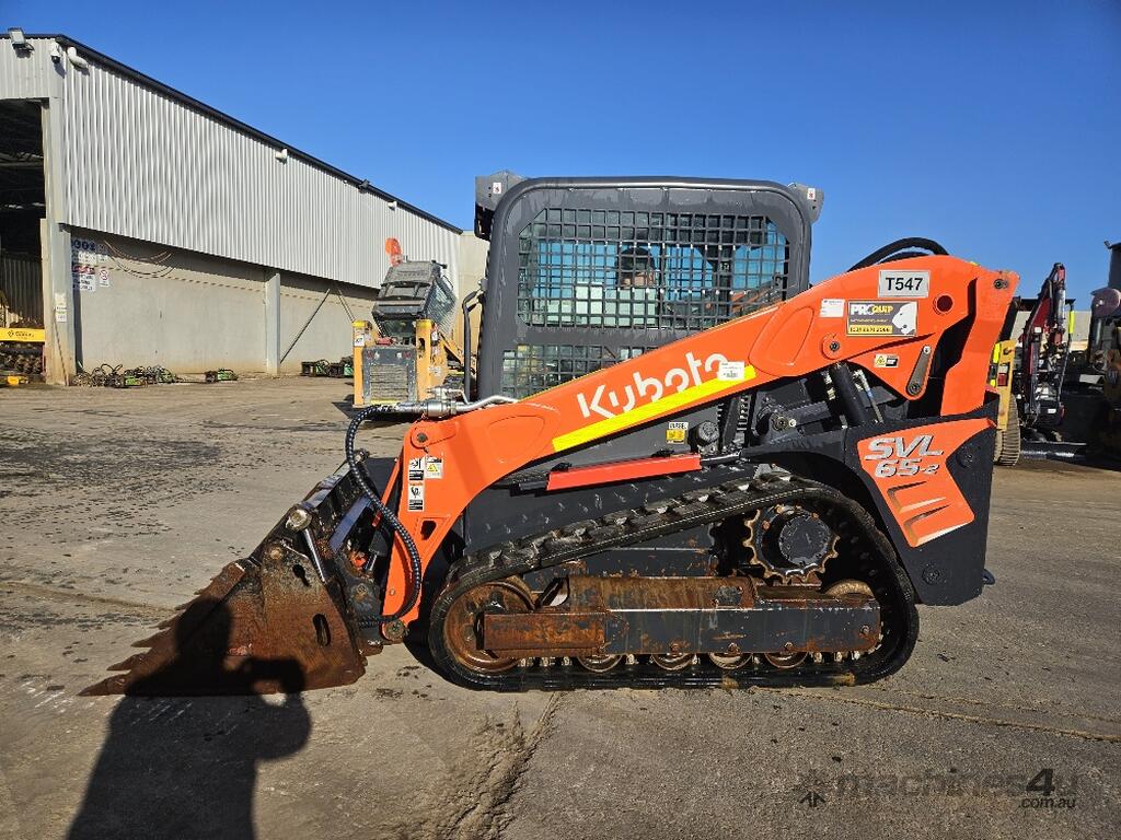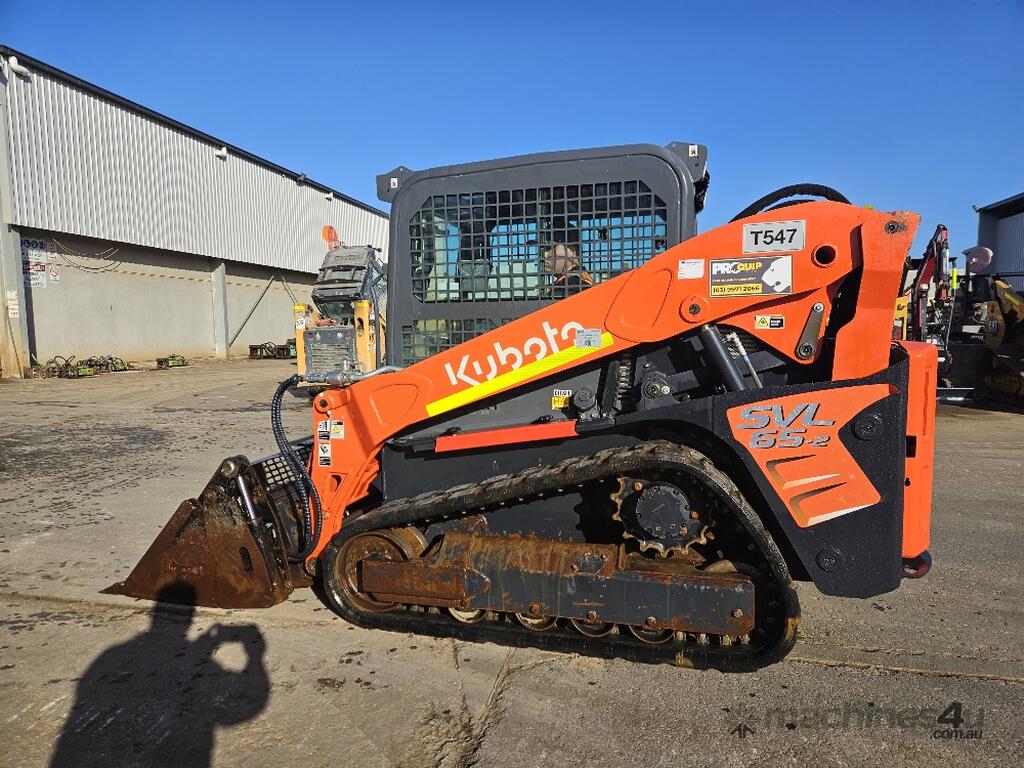2022 KUBOTA SVL65-2 TRACKED LOADER (T547) IN VERY GOOD CONDITION WITH LOW 760 HRS, RUBBER TRACKS, ROPS A/C CABIN, 4 IN 1 BUCKET, HYDRAULIC QUICK HITCH, UHF RADIO, E-STOPS, REAR VIEW CAMERA, FULL CIVIL SPEC, 67 HP POWERFUL KUBOTA DIESEL ENGINE, VERTICAL LIFT LOADER ARMS, PILOT CONTROLS (ISO STANDARD), 2 TRAVEL SPEED, FULL WORK LIGHTS, HIGH BACK SUSPENSION SEAT, LOW MAINTENANCE UNDERCARRIAGE, AUXILIARY HYDRAULICS AND ELECTRICS. FULL HISTORY, READY FOR WORK. 3-MONTH DRIVETRAIN WARRANTY