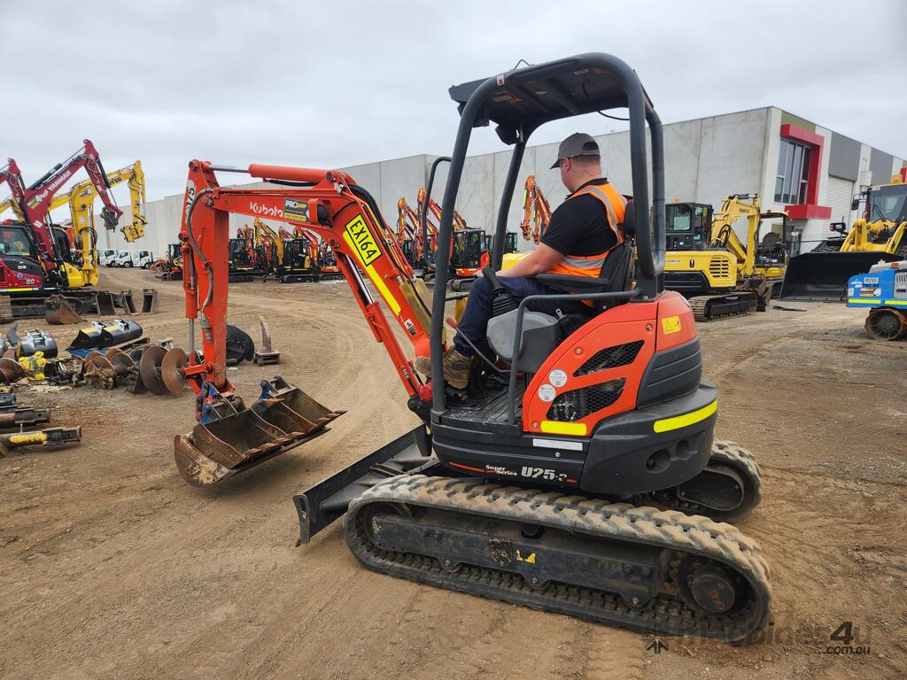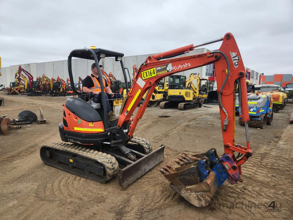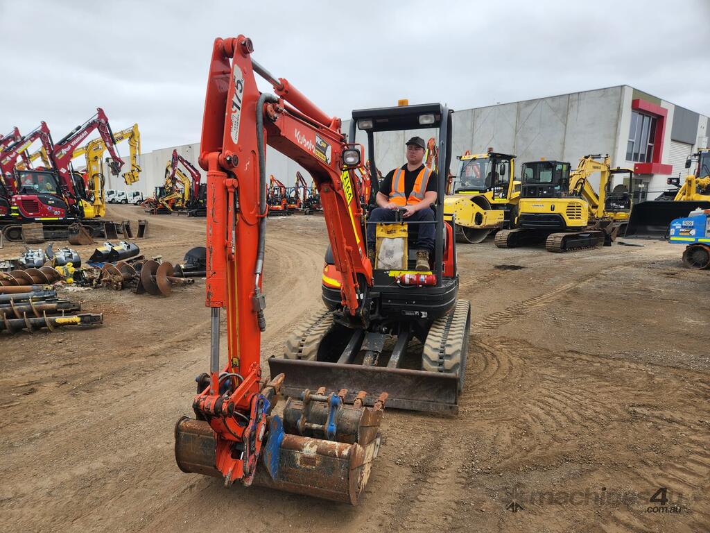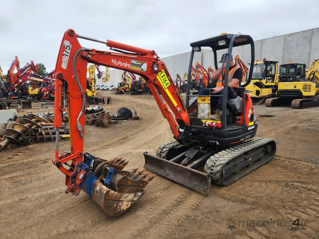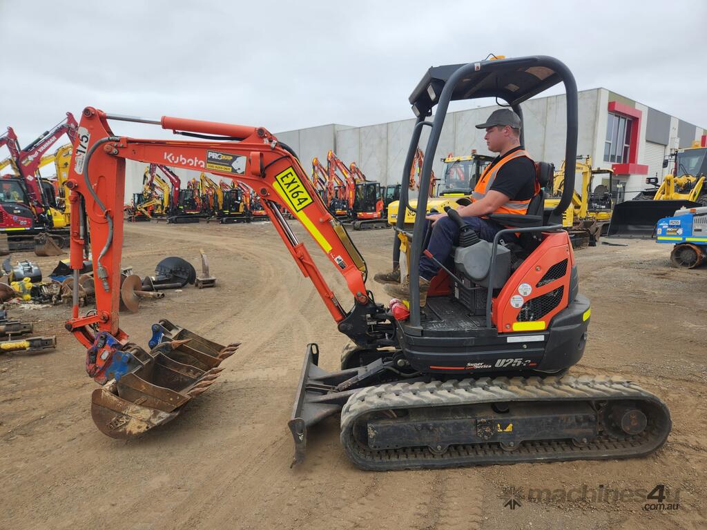 USED 2022 KUBOTA U.6T ZERO TAIL MINI-EXCAVATOR (EX164) WITH LOW 903 HRS. OPEN ROPS CANOPY, HYDRAULIC HITCH, 2 x DIG BUCKETS, MUD BUCKET, AUXILIARY PIPING, DOZER BLADE, RUBBER TRACKS, 2600KG OPERATING WEIGHT, FULL SERVICE HISTORY AND CIVIL SPEC. 3-MONTH DRIVETRAIN WARRANTY APPLIES
