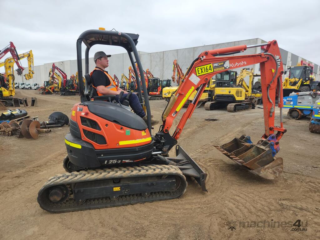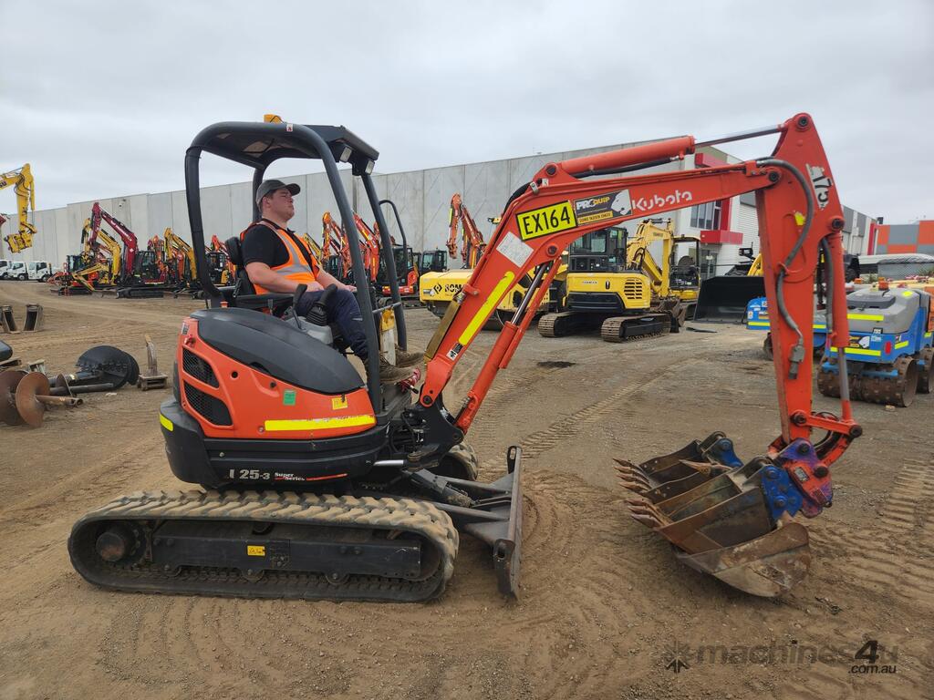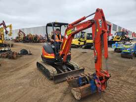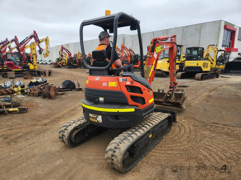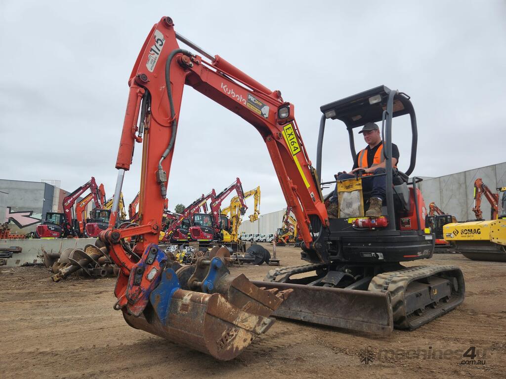 USED 2022 KUBOTA U.6T ZERO TAIL MINI-EXCAVATOR (EX164) WITH LOW 903 HRS. OPEN ROPS CANOPY, HYDRAULIC HITCH, 2 x DIG BUCKETS, MUD BUCKET, AUXILIARY PIPING, DOZER BLADE, RUBBER TRACKS, 2600KG OPERATING WEIGHT, FULL SERVICE HISTORY AND CIVIL SPEC. 3-MONTH DRIVETRAIN WARRANTY APPLIES