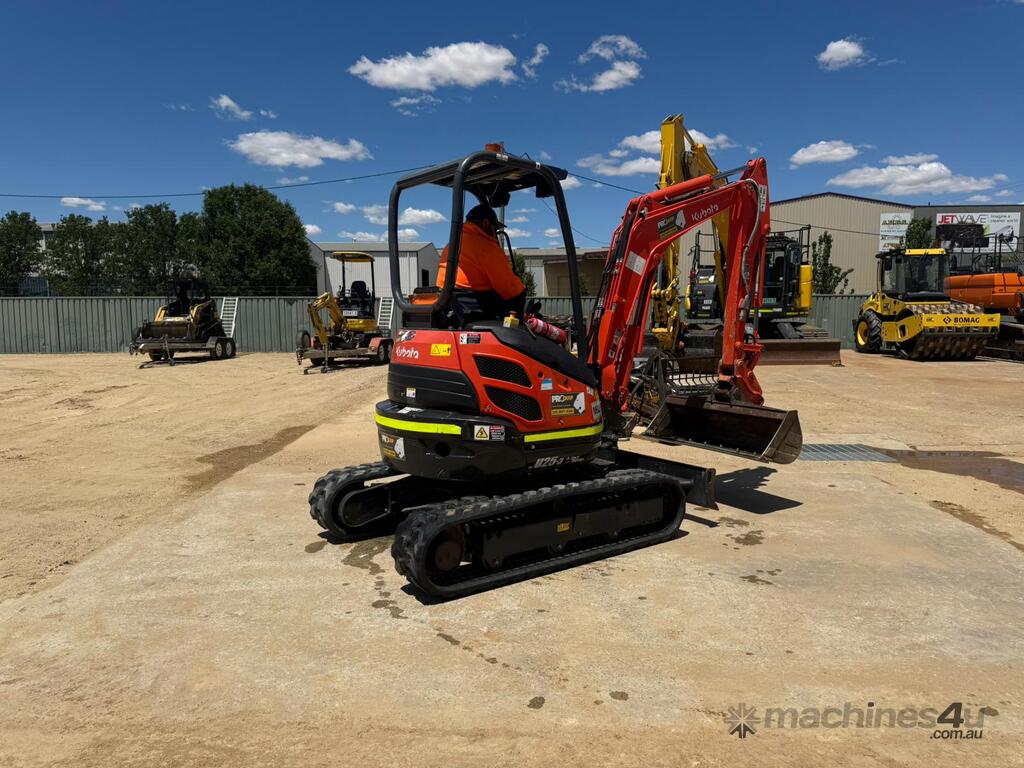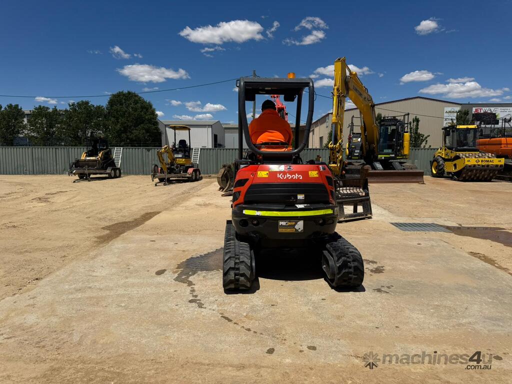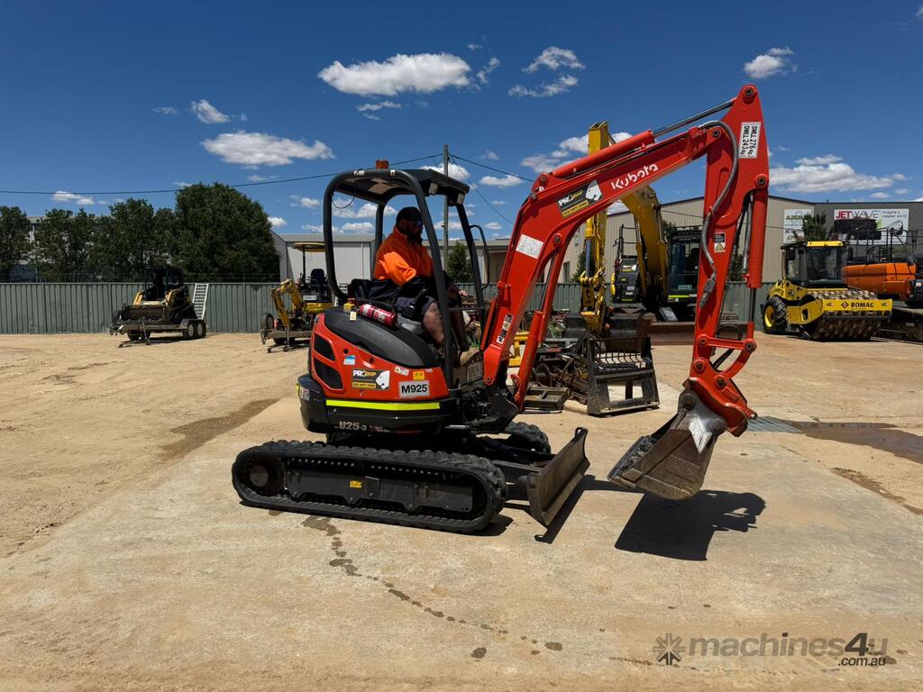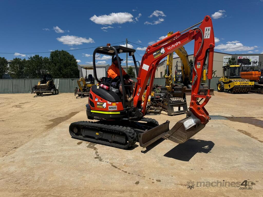 USED 2022 KUBOTA U.6T ZERO TAIL MINI-EXCAVATOR (M925) WITH LOW 700 HRS. OPEN ROPS CANOPY, HYDRAULIC HITCH, 2 x DIG BUCKETS, MUD BUCKET, AUXILIARY PIPING, DOZER BLADE, RUBBER TRACKS, 2600KG OPERATING WEIGHT, FULL SERVICE HISTORY AND CIVIL SPEC. 3-MONTH DRIVETRAIN WARRANTY APPLIES