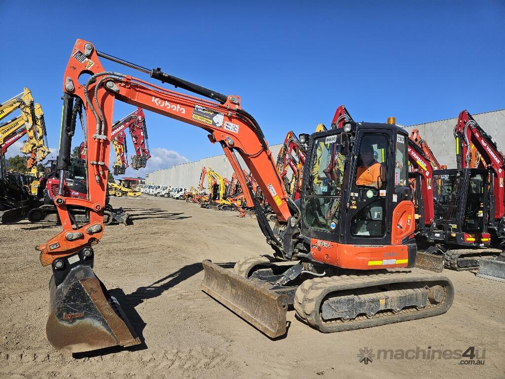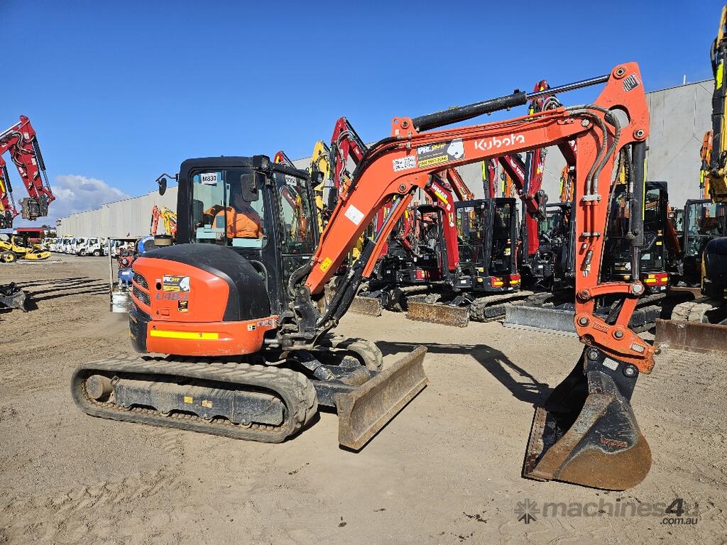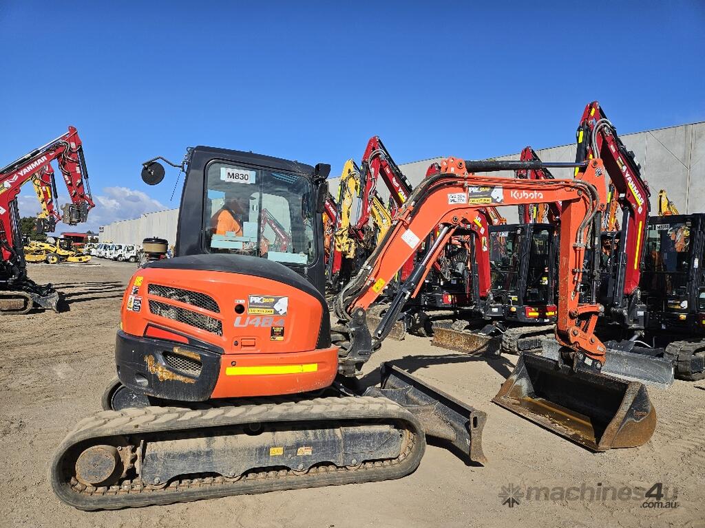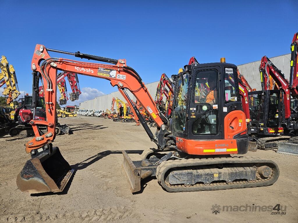2022 KUBOTA U.0T ZERO SWING EXCAVATOR (M830) WITH A/C CABIN, LOW 650 HRS. HYDRAULIC SAFETY HITCH, DOZER BLADE, DUAL HAMMER AND AUGER PIPING, RUBBER TRACKS, 2 SPEED, 300, 450 & 600MM DIG BUCKETS, MUD BUCKET WITH BOE, FULL CIVIL SPEC WITH E-STOPS, BATTERY ISOLATOR, SAFETY BEACON AND TRAVEL ALARM, RISK ASSESSMENT, FULL SERVICE HISTORY, AUSTRALIAN DELIVERED MARCH 2022, ONE OWNER, VERY TIDY MACHINE, READY FOR WORK. 3-MONTH DRIVETRAIN WARRANTY.