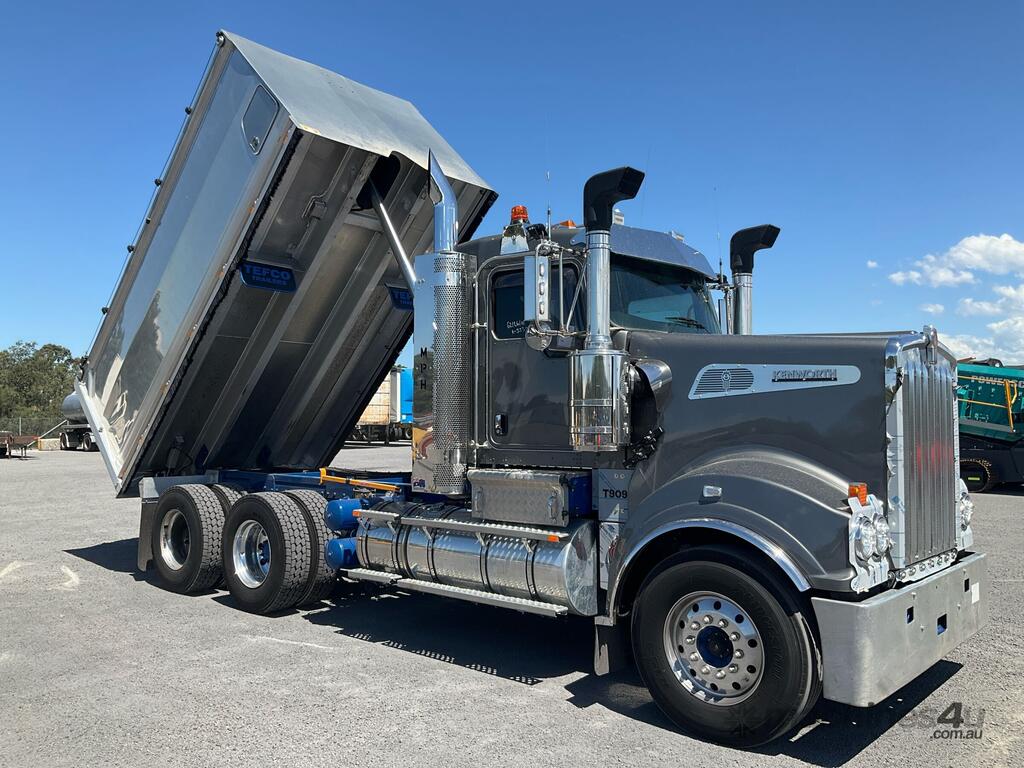 CP: 02/2022,Built: 01/2022,Kenworth,T909,Tipper Day Cab,Manual,Airbag,Engine #: 80370615,Cummins,6 Cyl,Diesel Turbo,18 Gears,8278 (Kms. Showing on Odometer),167 (Hrs. Showing on Hour meter),Colour: Grey,Unregistered,VIN: 6F5000000NA472992,Key No: 323E,Length: 8 m,GVM: 26500,GCM: 97000,Sold with No Plates,Key No: 323E
