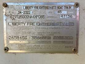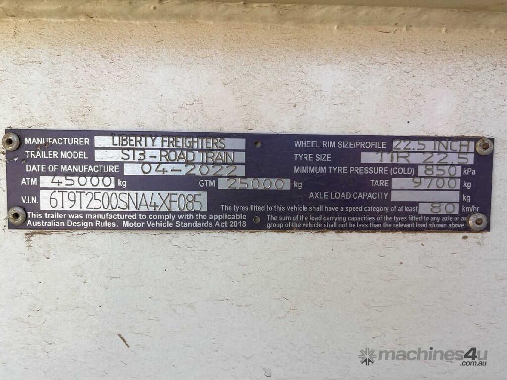 CP: 04/2022,Liberty Freighters ,ST3,Tri Axle Side Tipper,Hubometer not visible,Colour: White,Rego. No: YN88YM NSW,Rego expiry: 24/01/2026,VIN: 6T9T2500SNA4XF085,Serial No: 6T9T2500SNA4XF085,Sold with No Plates