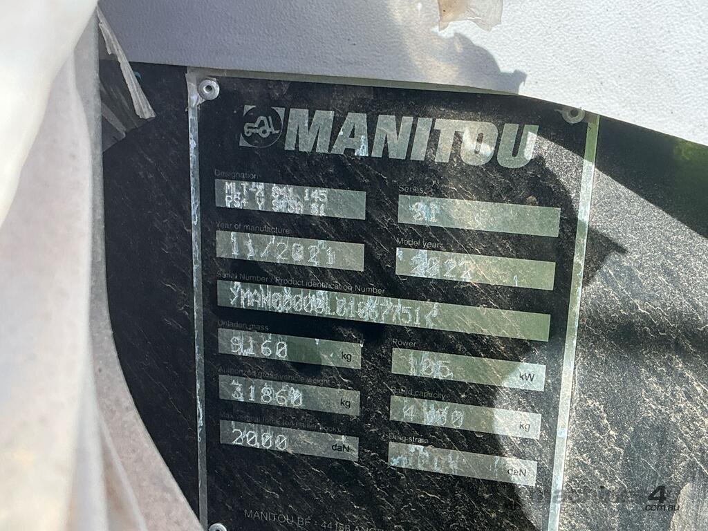 CP: 11/2022,Built: 11/2021,Manitou,MLT-X841-145PS Elite,Telehandler,4 Cyl,Diesel Turbo,Odometer not visible,Hourmeter not visible,Colour: Red,Unregistered,VIN: MAN00000L01067751,ROPS No: undefined,Sold with No Plates,WOVR Status: WOVR N/A,Incident Type: Fire