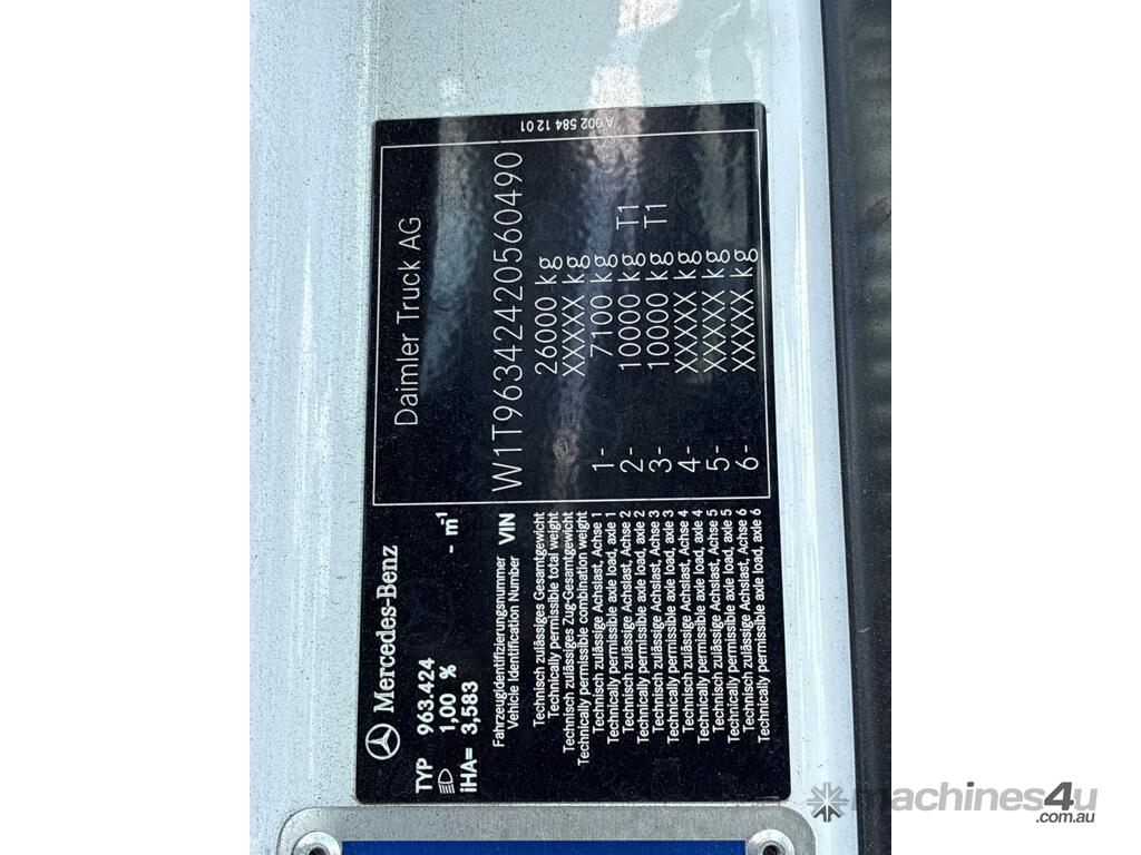 CP: 08/2022,Mercedes Benz,Actros 2658,Prime Mover Sleeper Cab,Automatic,Airbag,6 Cyl,Diesel Turbo,447807 (Kms. Showing on Odometer),Hourmeter not visible,Colour: White,Rego. No: NP(XO37RA), Unregistered NSW,VIN: W1T0490,Key No: 309E,GVM: 26000,GCM: 106000,Sold with No Plates,Key No: 309E