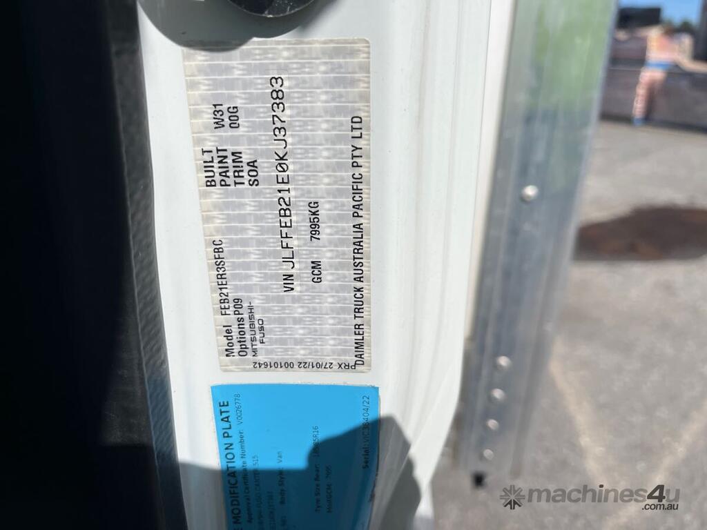 CP: 07/2022,Mitsubishi,Canter 515,Pantech,Automatic,Leaf Spring,4 Cyl,Diesel Turbo,33430 (Kms. Showing on Odometer),Hourmeter not visible,Colour: White,Rego. No: NP(S363CTS), Unregistered SA,VIN: JLFFEB21E0KJ37383,Key No: P156,GVM: 4495,GCM: 7995,Sold with No Plates,Key No: P156
