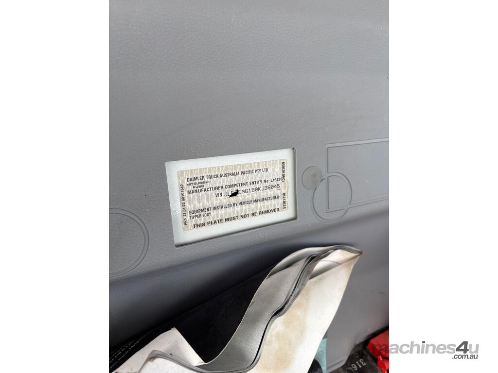 CP: 12/2022,Built: 10/2022,Mitsubishi Fuso,Canter 615S,Tipper,Automatic,Diesel,14370 (Kms. Showing on Odometer),Hourmeter not visible,Colour: White,Rego. No: 1WV7DI VIC,VIN: JLFFEA61B0KJ36045,Length: 10 ft,GCM: 7995,Sold with No Plates,WOVR Status: WOVR N/A,Incident Type: Impact