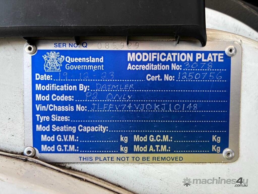 CP: 10/2022,Built: 09/2022,Mitsubishi Fuso,Shogun 510S,Prime Mover,Automatic,Airbag,6 Cyl,Diesel,109383 (Kms. Showing on Odometer),3410 (Hrs. Showing on Hour meter),Colour: White,Rego. No: NP(XB91KW), Unregistered NAT,VIN: JLFFV74VJ0KJ10148,Key No: 83,GVM: 26000,GCM: 63000,Sold with No Plates,Key No: 83