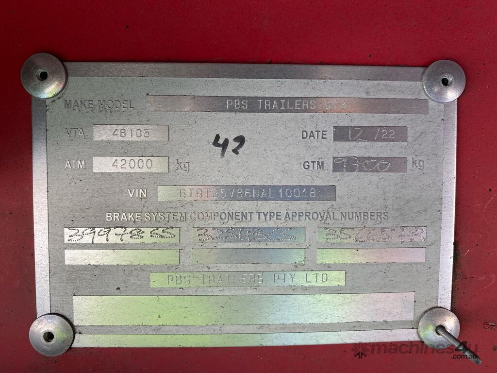 CP: 12/2022,PBS Trailers,ST3,Tri Axle Double Drop Curtainside B Trailer,Colour: White,Rego. No: NP(YB26CT), Unregistered QLD,VIN: 6T9T25V86NAL10018,Sold with No Plates
