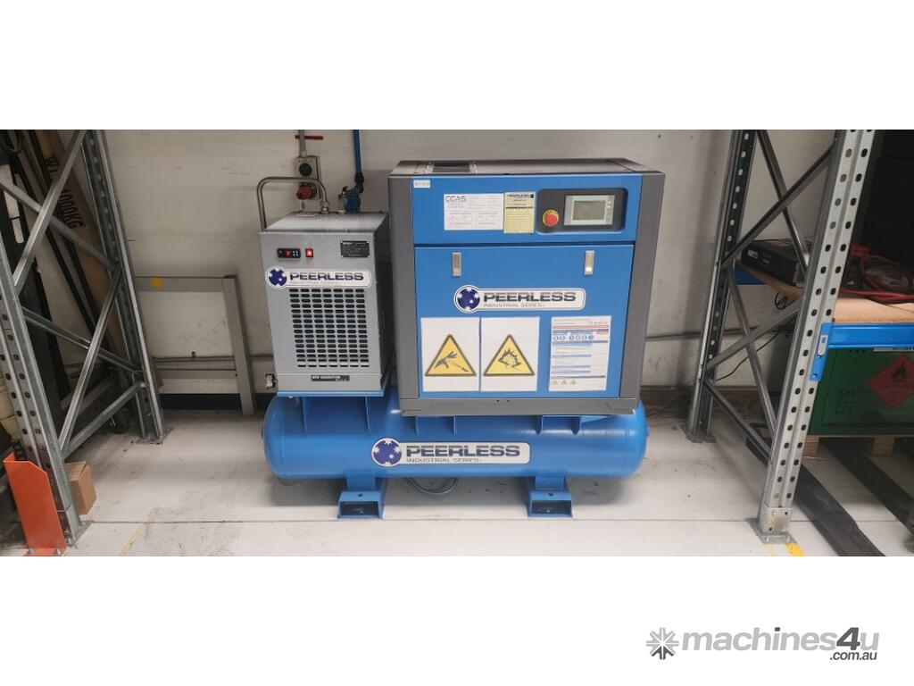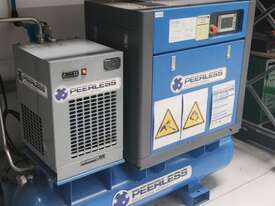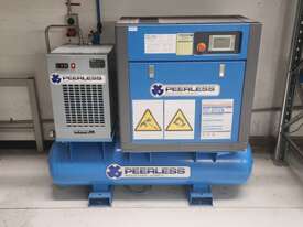 For sale is one Peerless HQD10VSHP Variable Speed Rotary Screw Compressor, a premium unit designed for efficiency, and reliability. This machine has seen light use, and is in excellent condition. 600hrs, operational time. 72hrs load time.