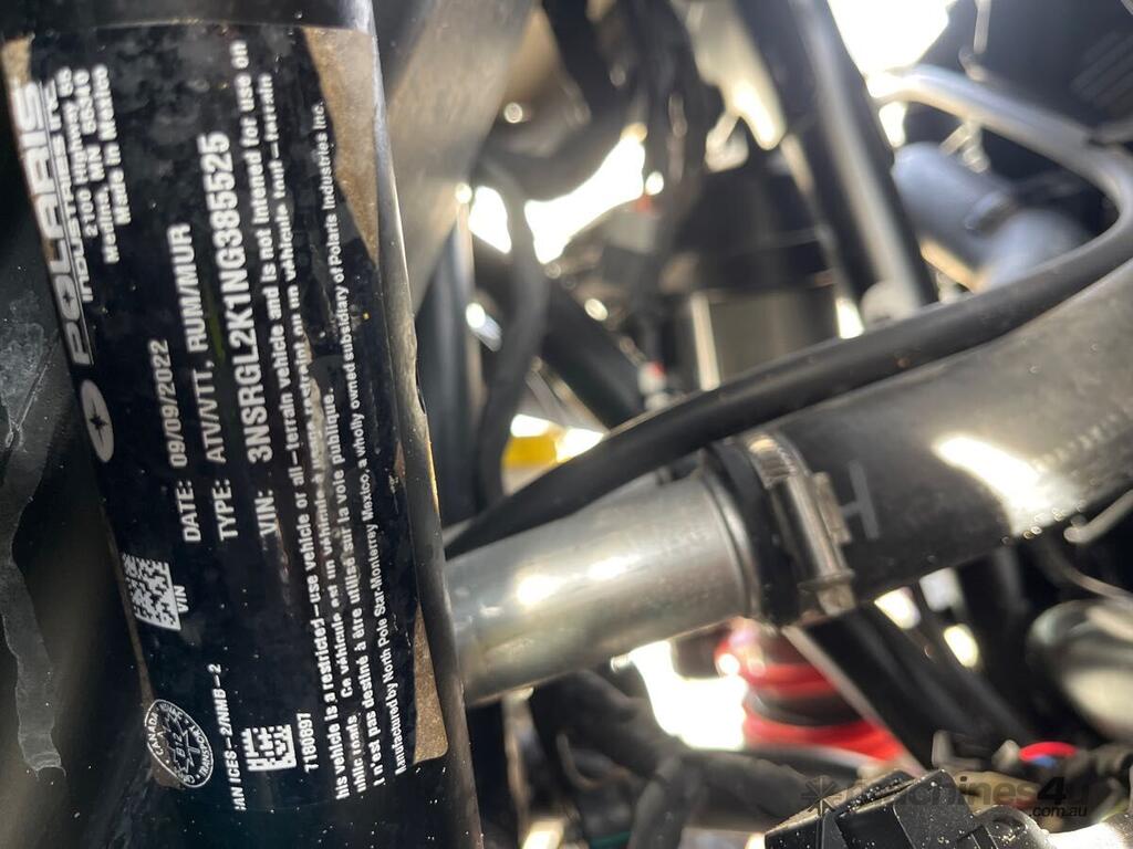 CP: 09/2022,Polaris,RZR,ATV,4 Cyl,Petrol,Odometer not visible,Hourmeter not visible,Colour: Black,Unregistered,VIN: 3NSRGL2K1NG385525,Sold with No Plates
